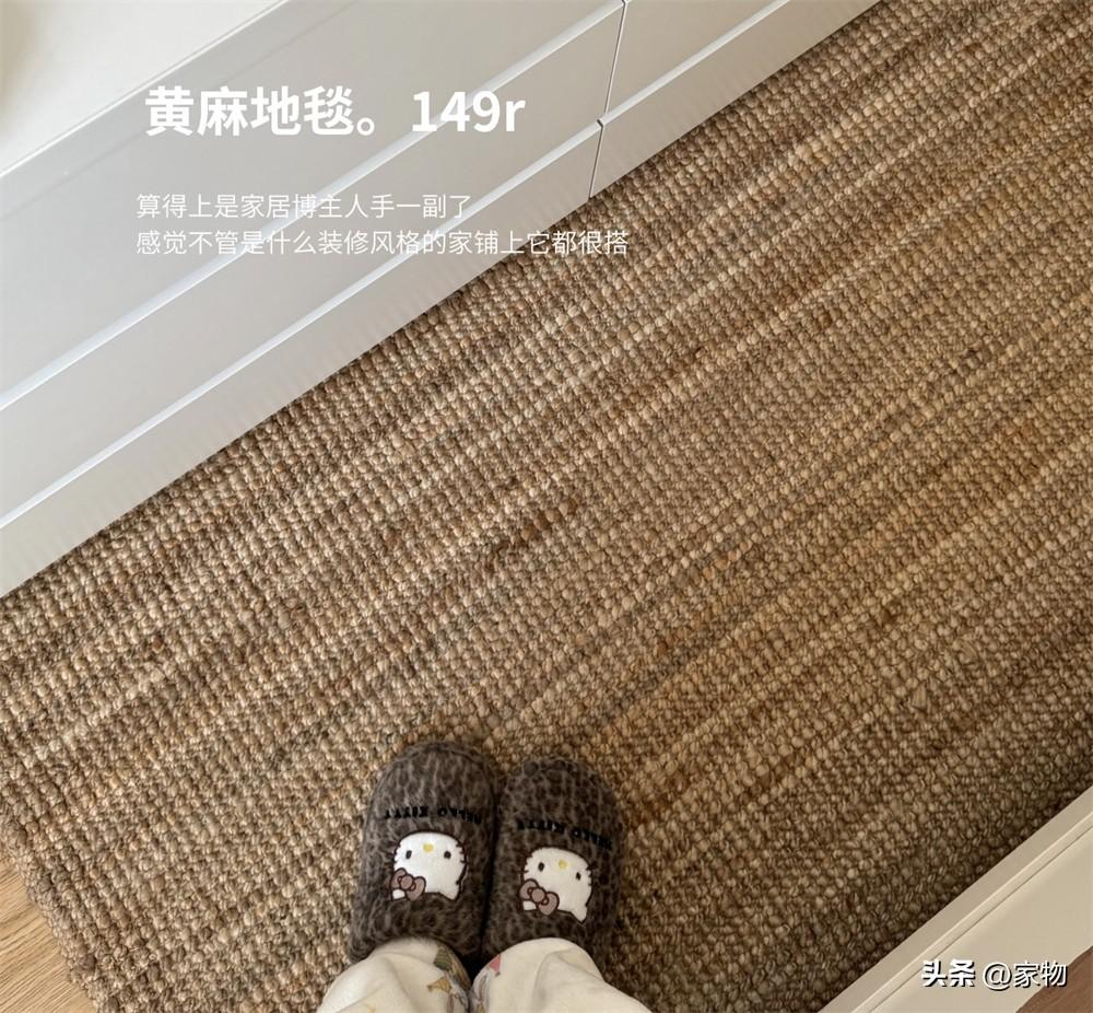 最後就是這種黃麻地毯啦,宜家的黃麻地毯真的是用料足又便宜,這一整塊當做小客廳的地毯或者牀邊毯都OK,腳感雖說不如羊毛的,但卻特別防貓抓,又和許多家居裝修風格搭配得上,也很值得推薦哦~