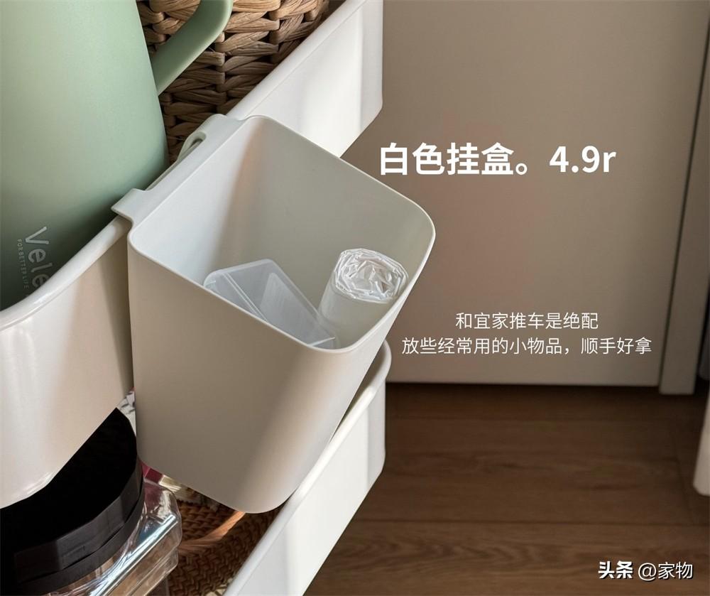 這掛盒本身是個小小的配件,但我發現無論是配合宜家的小推車,還是單獨拿出來放到桌子上當個收納盒用,都非常合適;而且我發現,放到浴室放些頭繩等小物件,也是恰到好處,推薦諸位試試哦。
