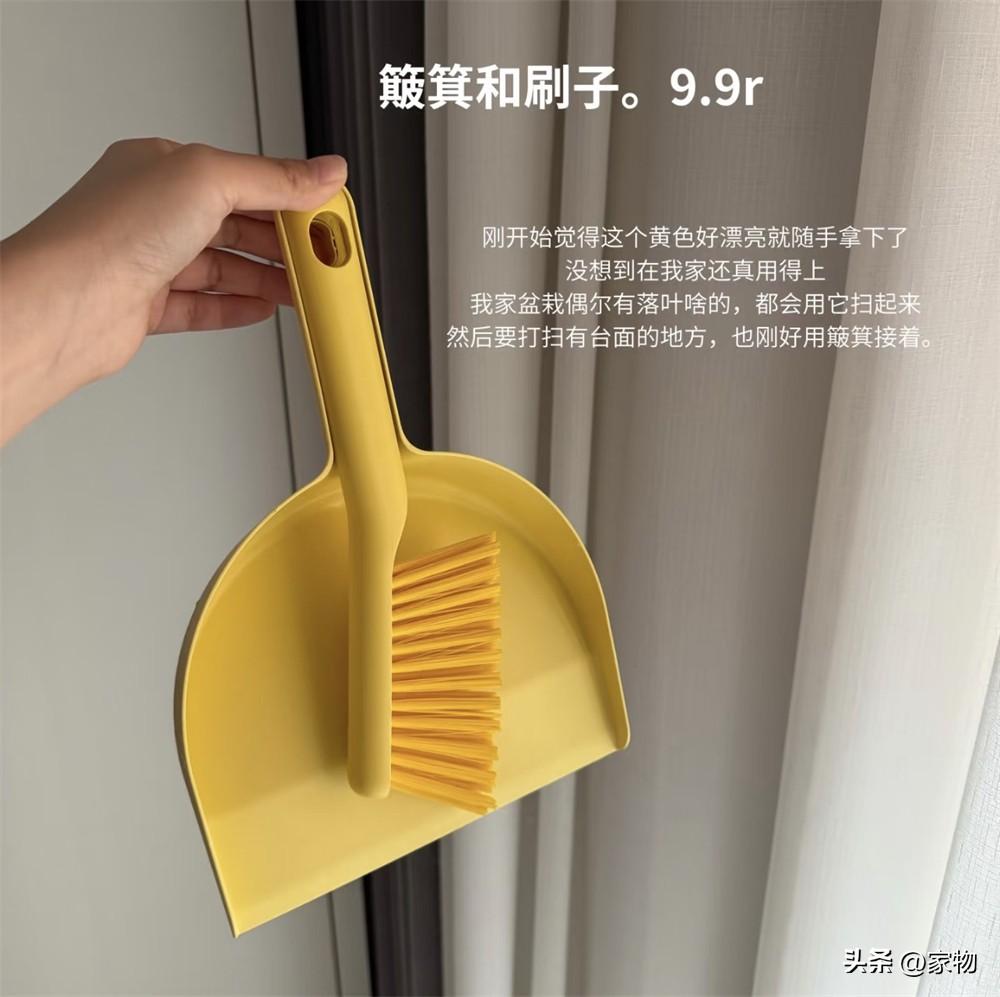 超小型的一個刷子和簸箕組合,主要用來清掃桌面牀面或其他地方的灰塵和細小髒污,哦對,包括牆角縫隙的一些灰塵、盆栽落葉和掉下的枯枝,也可以用它來打掃,用起來超靈活,而且這兩樣加起來才九塊九,還要什麼自行車!