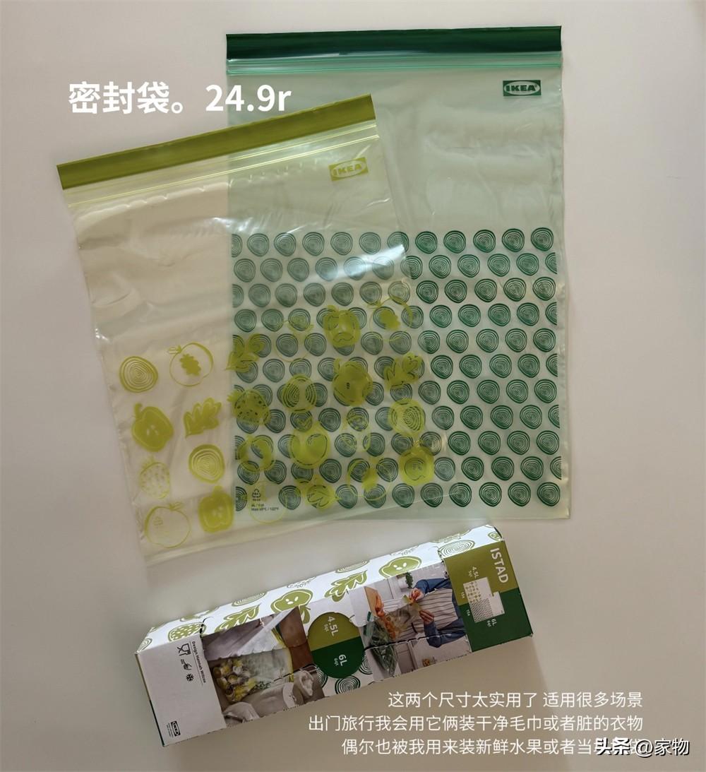 先不說宜家這各種密封袋經常更換圖案,顯得又清新又好看,單說這密封袋的雙條拉鍊扣,就讓它的實用性大大增加,就這麼說,生菜放在裏面再放到冰箱裏,一週都能保持葉片水分,真的絕了!