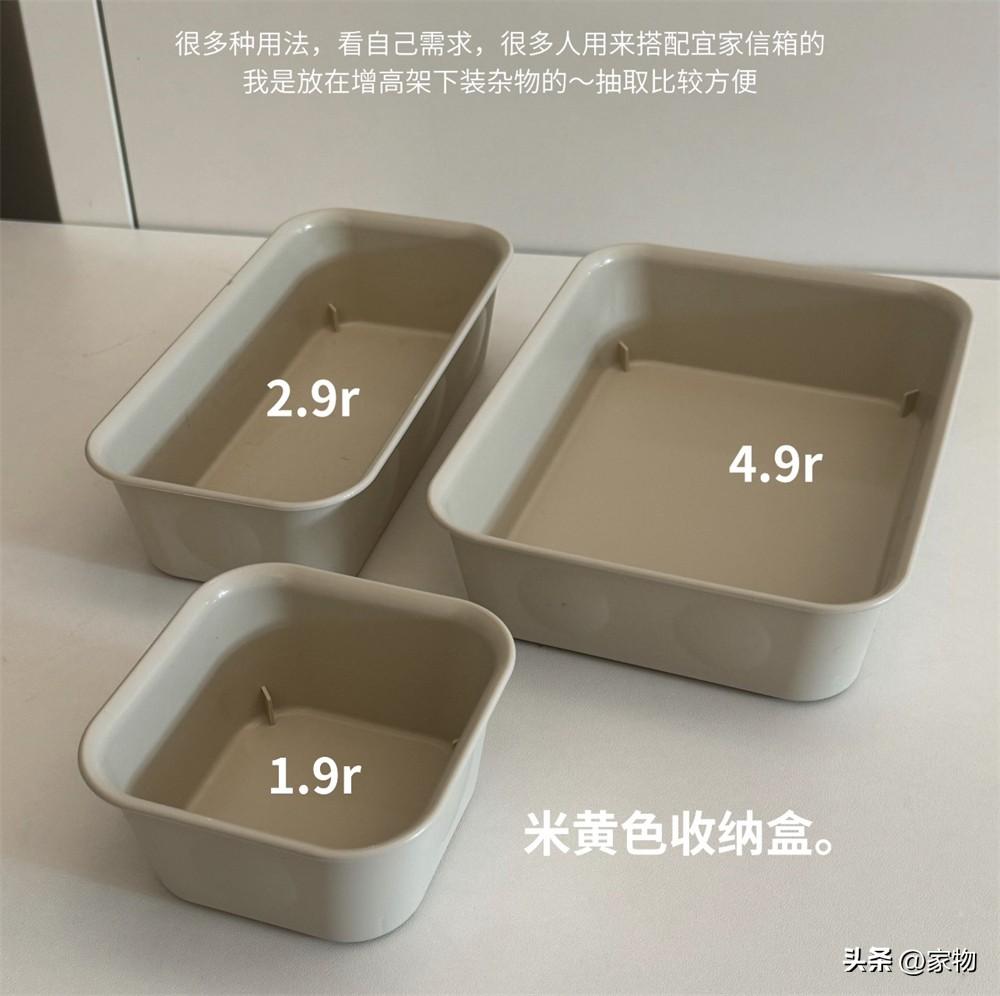 兩大一小收納盒,每一個都不超過五塊錢,原本也是宜家的小配件,但現在用起來,卻可以收納各種零散雜物,搭配家裏隨便的收納櫃和收納架使用,都可以讓室內收納變得整潔乾淨許多,也值得一推~