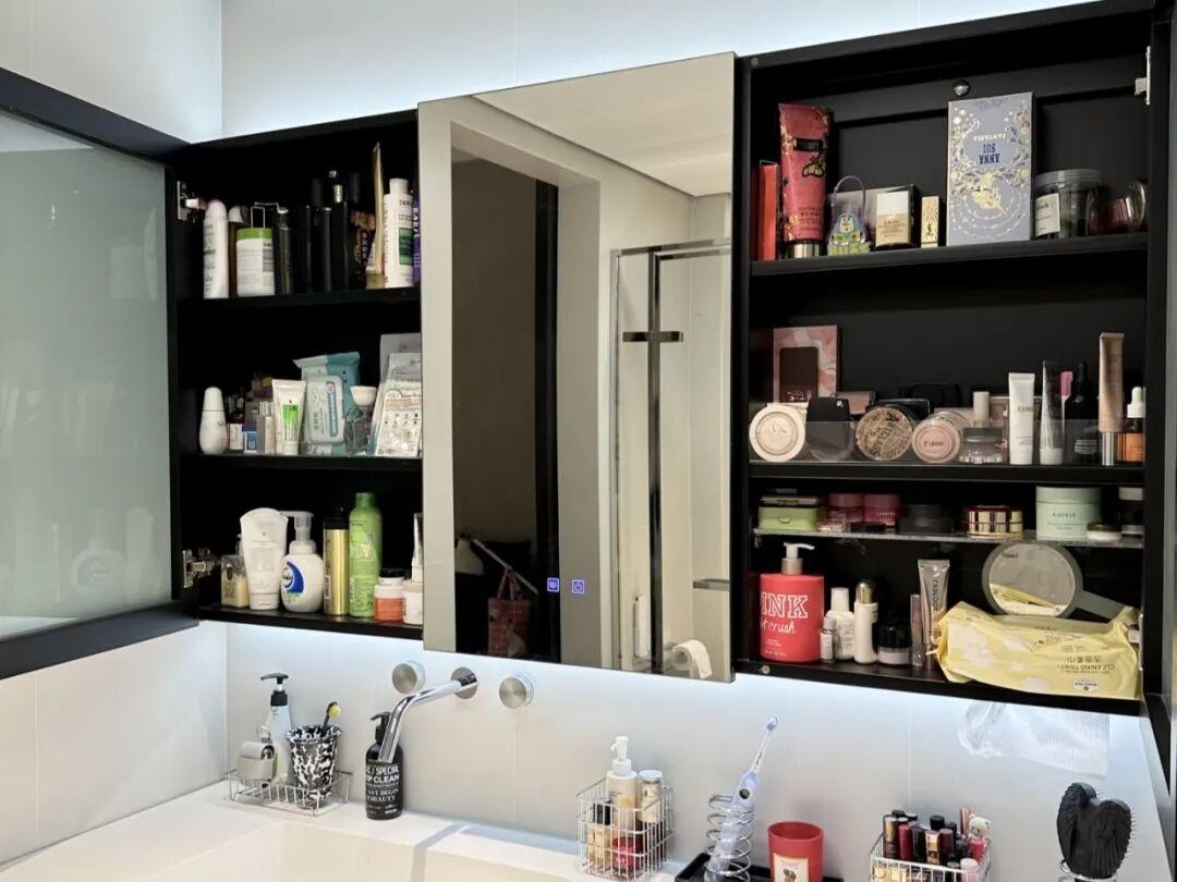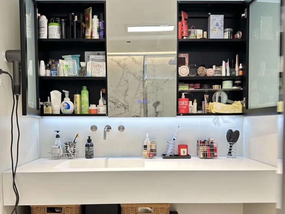而鏡櫃也可以讓檯面空無一物,清潔變得很簡單,壁龕排水好,避免了傳統置物架積水問題。