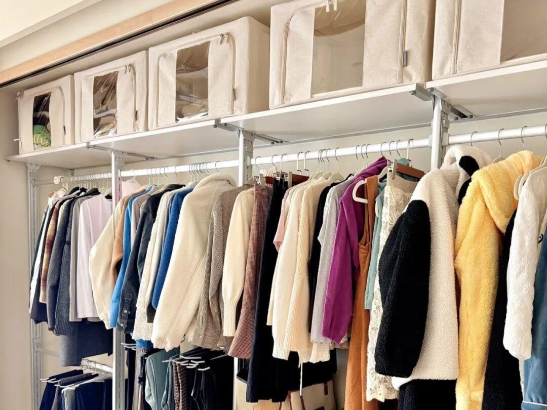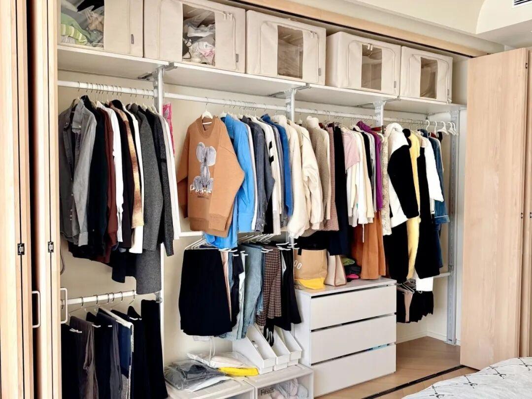入住後發現,這個衣櫃由於是金屬支架可以靈活調節,能夠根據衣物的長短調整高度,非常實用。