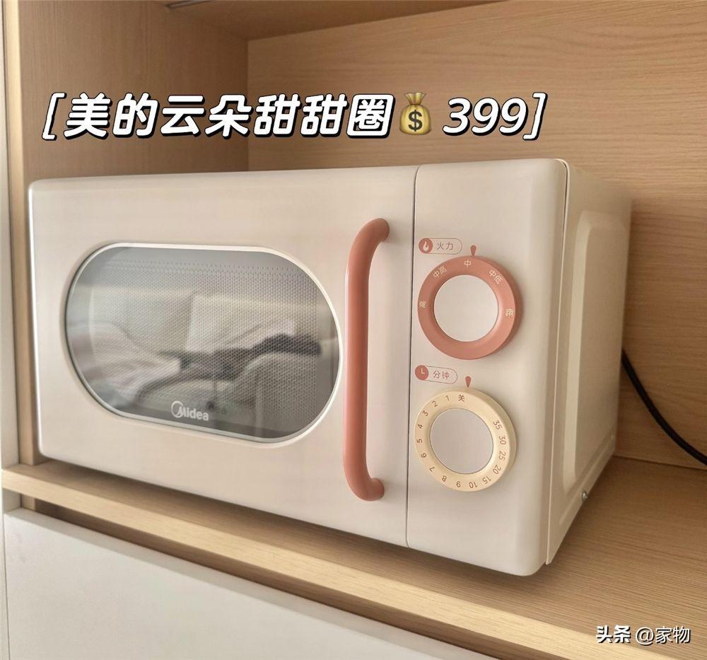 我買這微波爐主要是爲了好看,它和普通微波爐最大的不同之處,就是把手和操作轉盤做成了馬卡龍色的圓潤造型,看起來還真挺有復古韻味的,放在奶油風或原木風的家居裝修風格中,十分搭配。
