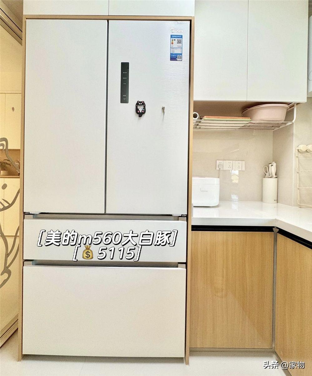 其實當初冰箱的預算可以減半,但我實在是喜歡這種白色的法式門冰箱,看了松下的大白桃實在有些貴得超出預算,最後還是選了這美的的m560,不僅好看,價格還在接受範圍內,上面對開門,底部兩個大小抽屜,560L的容量完全滿足一家人生活所需。