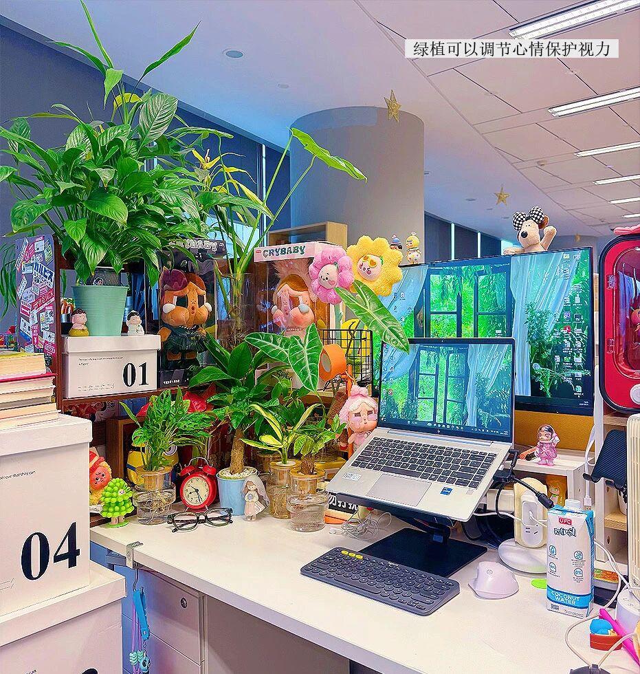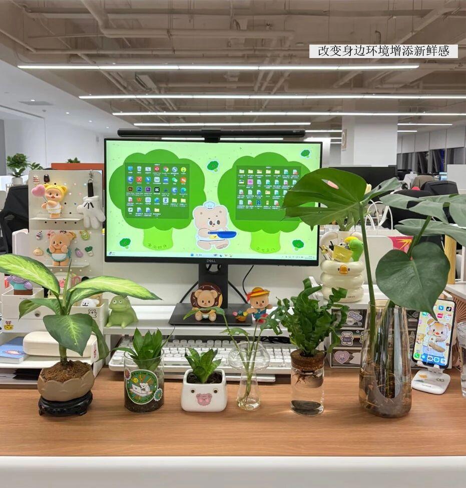 而最簡單有效的丰容,就是在工位和家裏擺放幾盆綠植