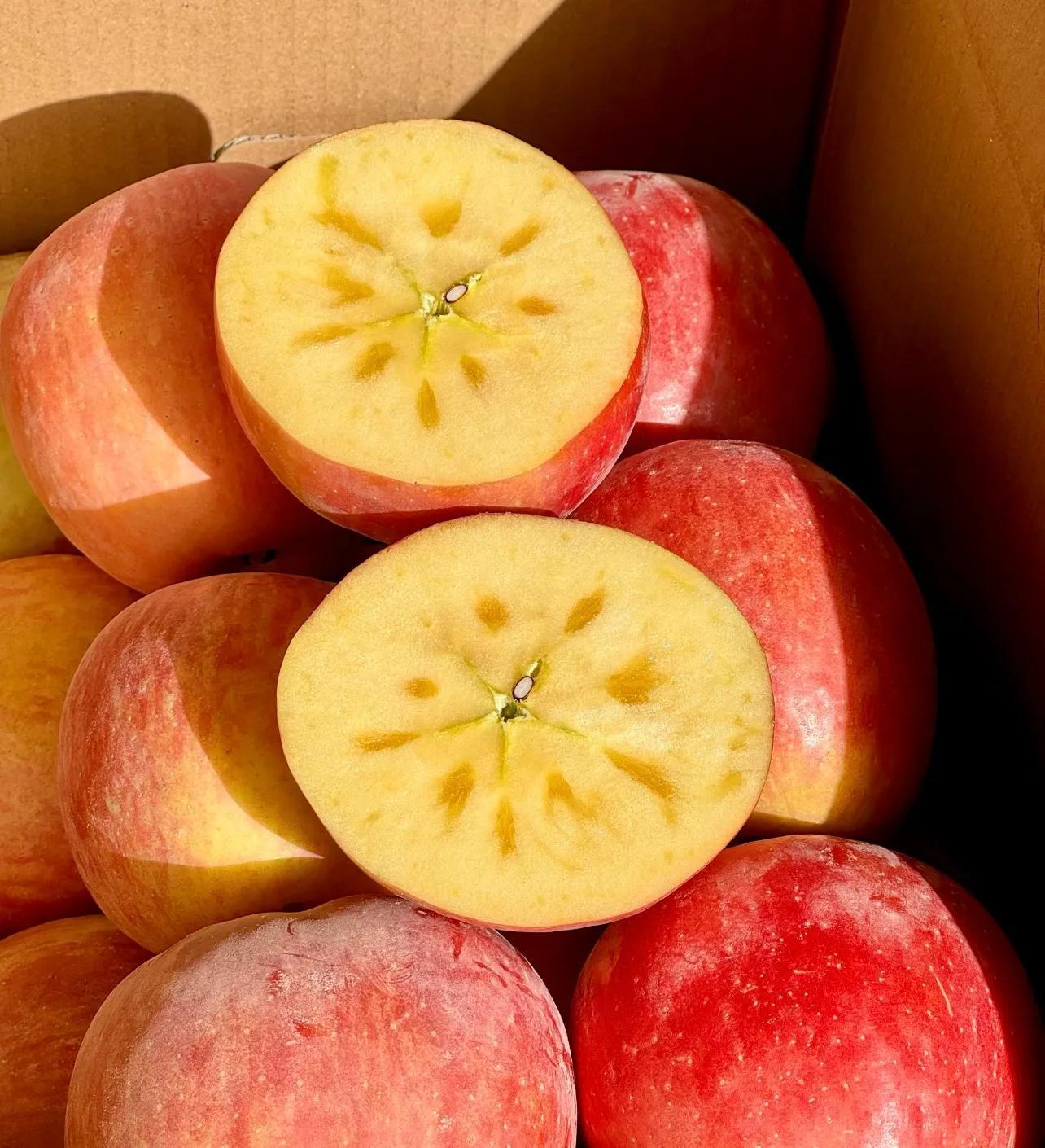 雖然阿克蘇蘋果的集中上市期在11月,但12月底-1月,纔是它口感轉化的最佳時期。經過一段時間的儲存,它的冰糖心範圍更大,口感也更綿密。