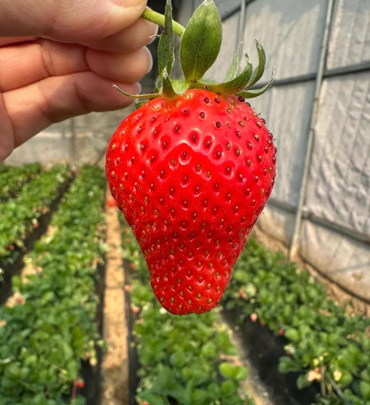 從日本引進的品種,規模不算很大,所以沒有紅顏那麼出名,個頭上沒有那麼圓而大,但只要你喫過一次,就懂了。