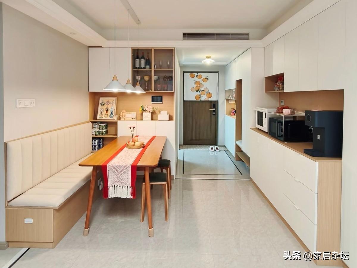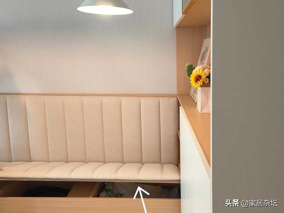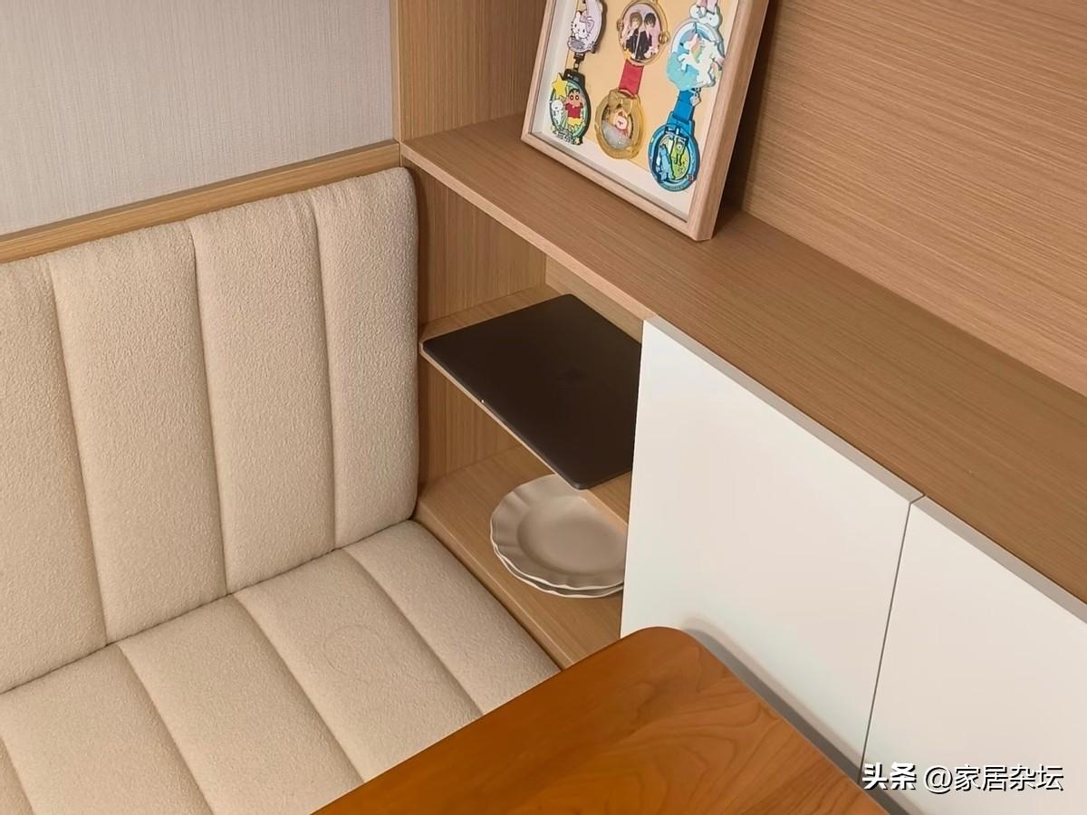 由於很多家庭的餐廳不是很大,導致儲物受限。我家這次裝修,老婆堅持做了卡座儲物系統。