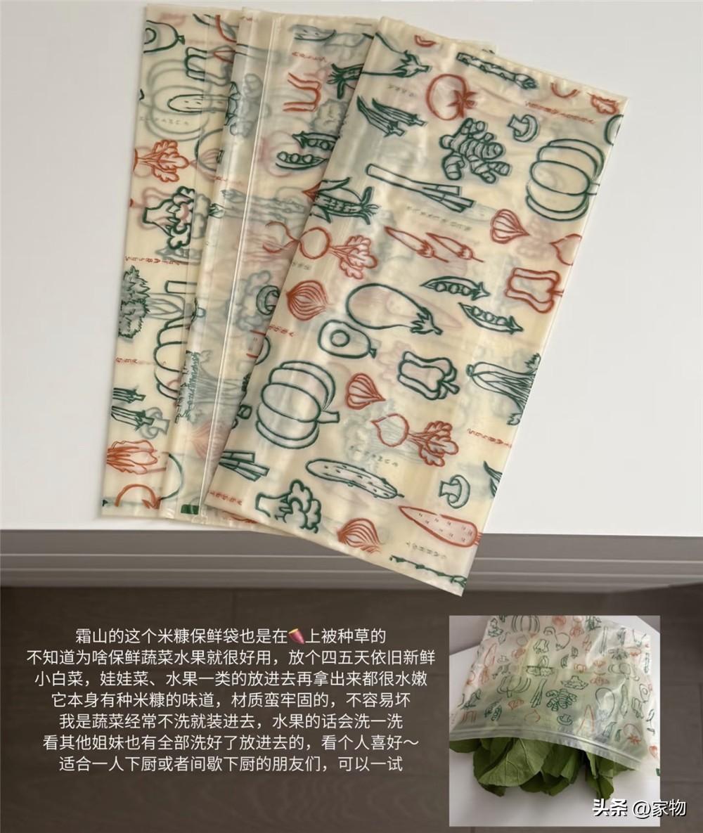 和普通保鮮袋不同,它以脫脂米糠爲原料,再輔以纖維黴素酶解和阿魏酸提純,有極佳的保鮮保質效果,放入水果葉菜都能延長保質時間,再加上尺寸足夠大、韌性足夠強可清洗充分利用,用起來真的非常靈活。
