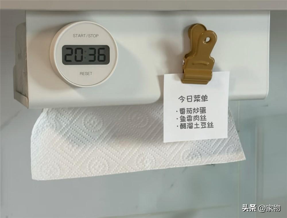白色的金屬紙抽架,可以直接掛在廚房的吊櫃上,完全不會佔用太多的空間,把紙抽倒放在上面,用到的時候抽一張就行,真的是又省地兒又方便,實用性非常強,更不用說,比起那些塑料的還更耐用。