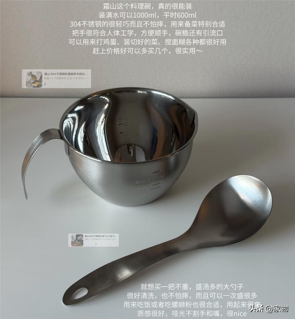 再說說這不鏽鋼料理碗,裏面有1000ml的容量,刻度清晰還帶個鷹嘴口,方便倒液體。