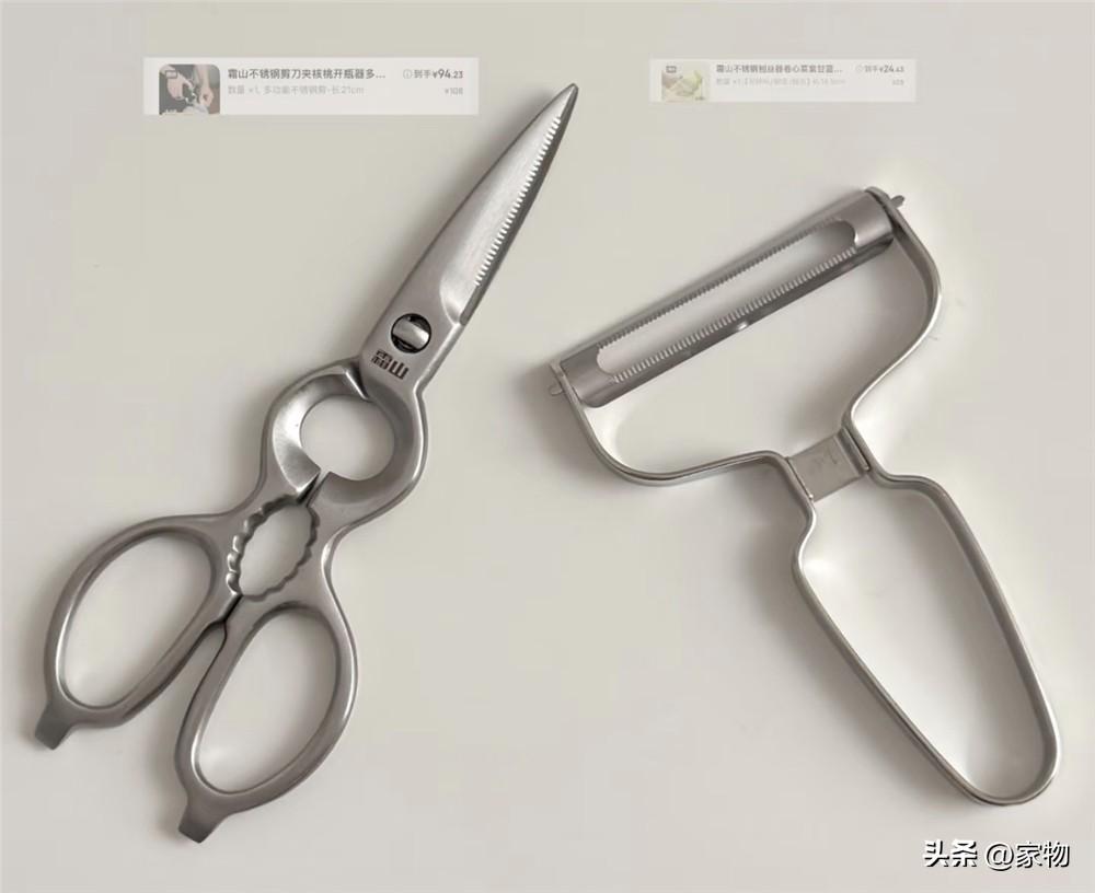家裏的剪刀和削皮刀,我也在霜山換了個遍,這剪刀尤其對我心思,它整體是個葫蘆形的,刃口平滑,底部還有開瓶器、夾核桃器和開罐器,一把剪刀能勝任廚房大多數的工作,除了略貴一些外,沒任何毛病。