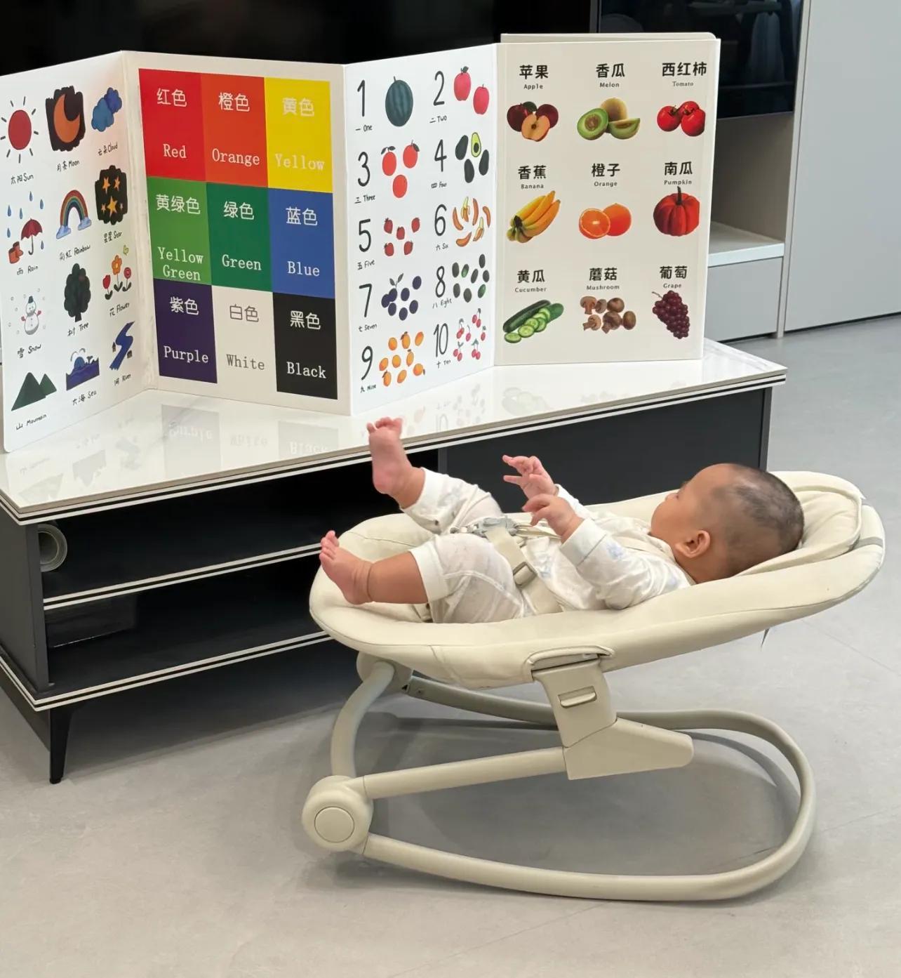 年輕父母是很會給自己省力的,比如,電動搖搖牀,理想:解放大人,各忙各的。