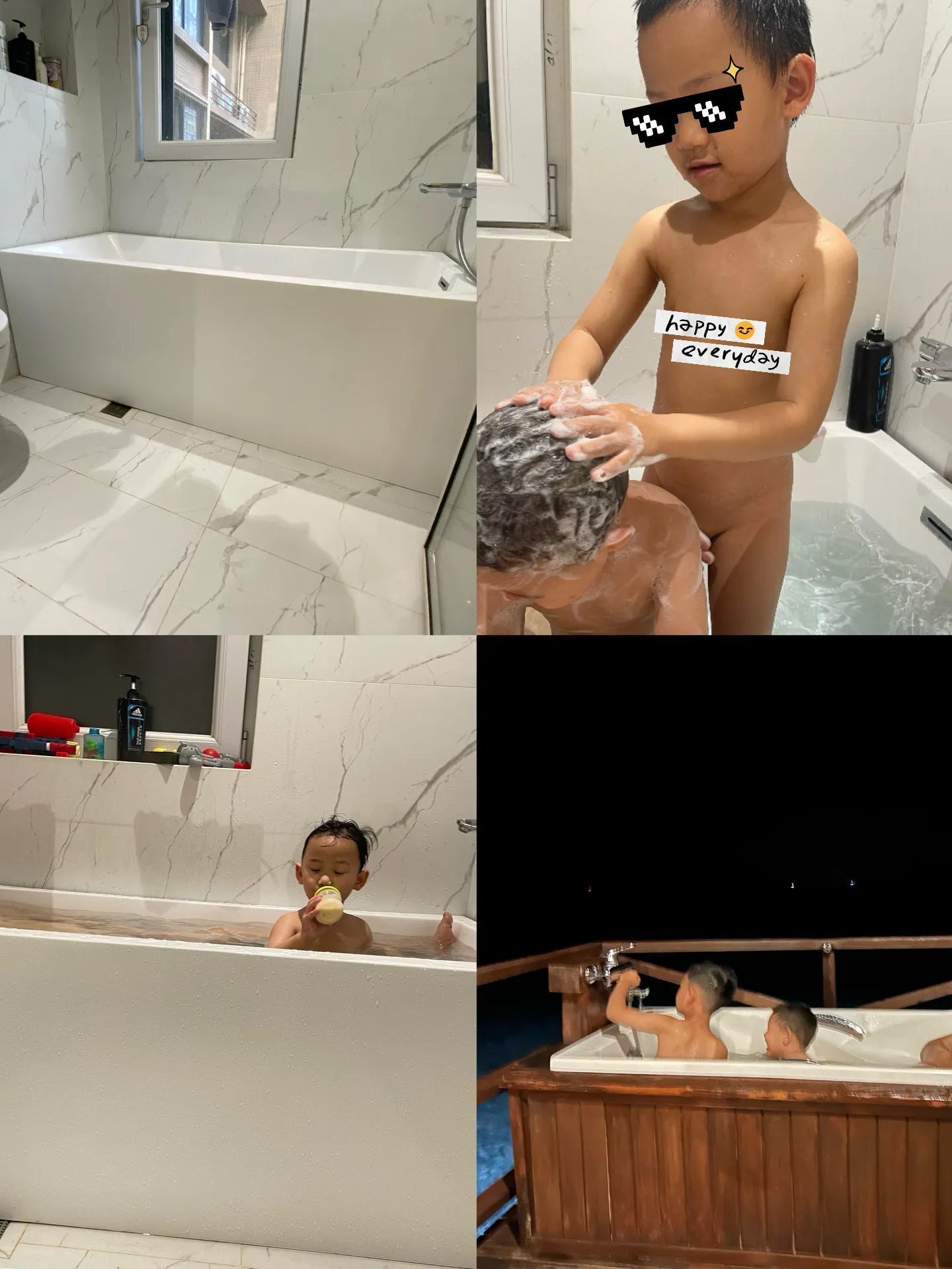 我經常和我倆娃泡,他們可以在裏面玩,對我來說,這是一天中唯一能徹底放鬆、同時陪伴孩子的時光,不用追着跑,不用想各種遊戲。這個習慣甚至延續到了出門旅行,我們選酒店的一個標準就是:要有浴缸。
