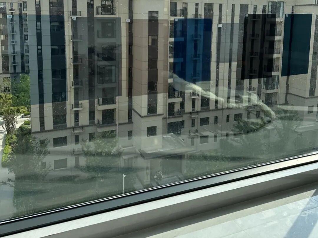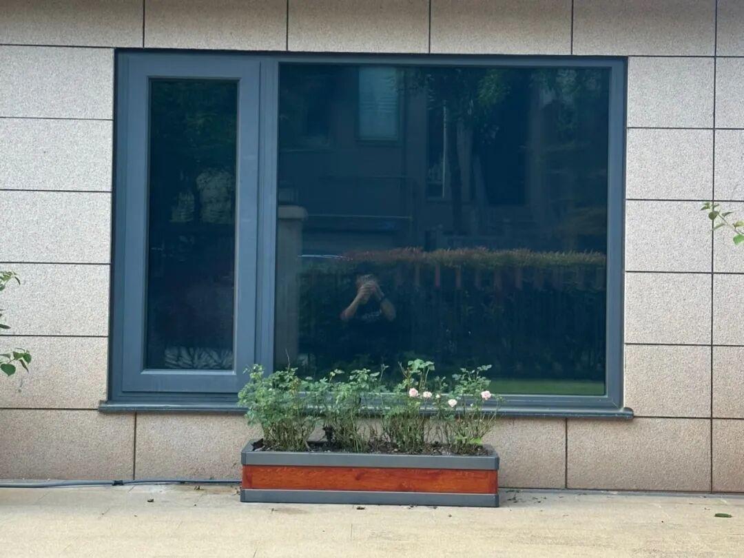 貼隱私保護膜,採用了特殊光學技術,從室外看呈現鏡面或者是磨砂,能夠保護室內的隱私。而從室內看向室外,又能保持視覺的清晰。