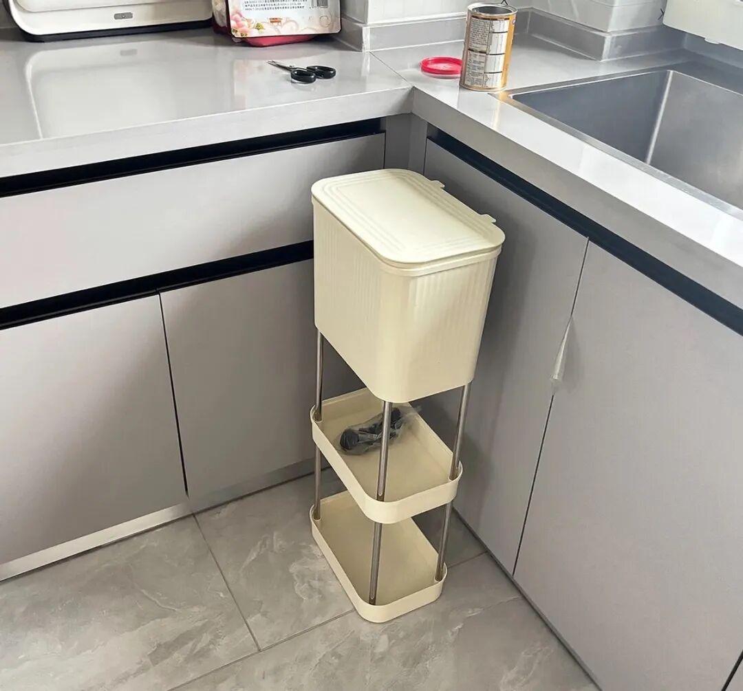一方面它“個子高”,頂層的垃圾桶與檯面齊平,方便收取檯面垃圾,還能讓你不用彎腰。