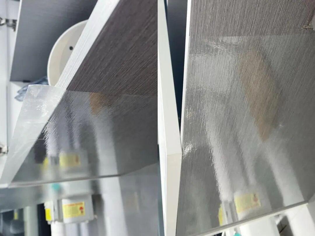 等到貼紙表面積累了明顯油漬,不需要費力刷洗,直接撕下更換一張新的即可,底下的櫃體依然光潔如新。