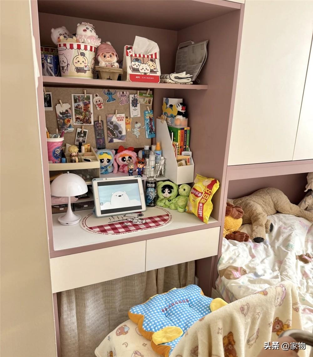 它可以說是榨乾了4㎡臥室的最後一寸空間,但也正因爲它的存在,讓這位廈門姑娘的小屋擁有了辦公遊戲和梳妝檯的功能,雖是蝸居,卻堪稱一間完完整整的臥室。