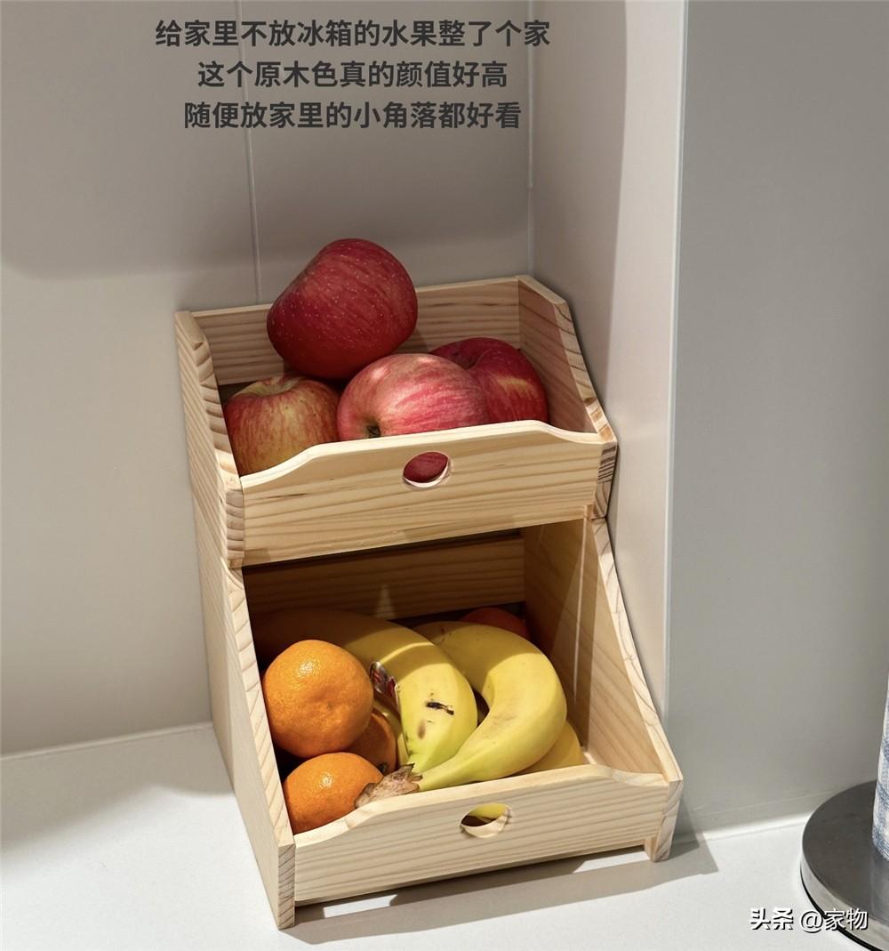 原因無他,造型、木紋實在是太好看了,隨便放點水果進去,一下子就烘托出了幾分田園風色彩,放在廚房或者餐桌上都不錯。