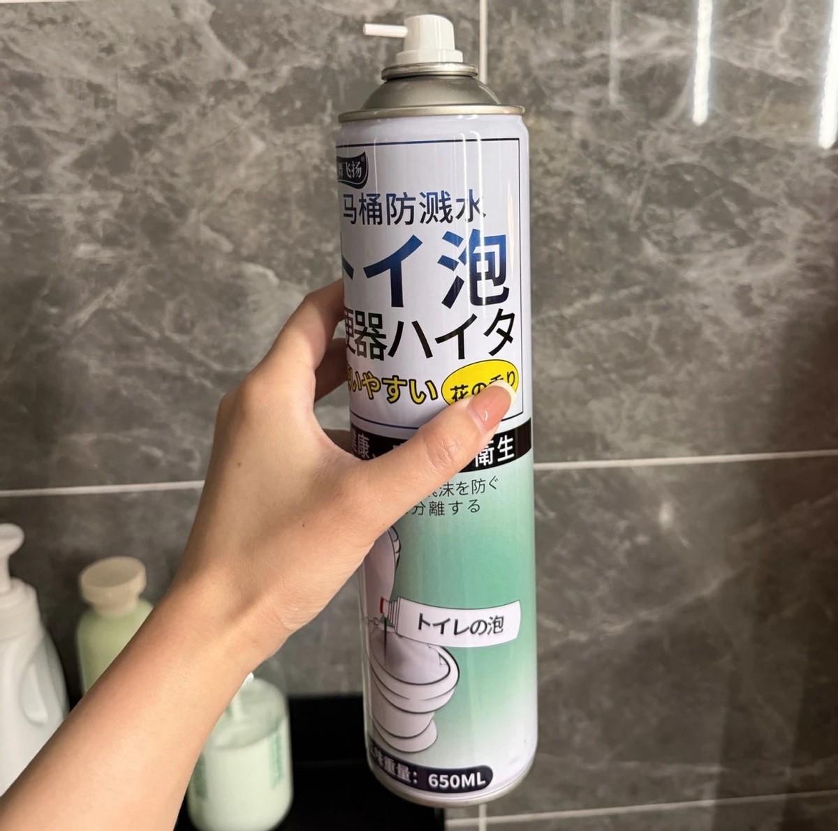 它使用時只需要往馬桶水面上噴灑一層,立刻就會形成緻密的泡沫層,有效防止水花飛濺。