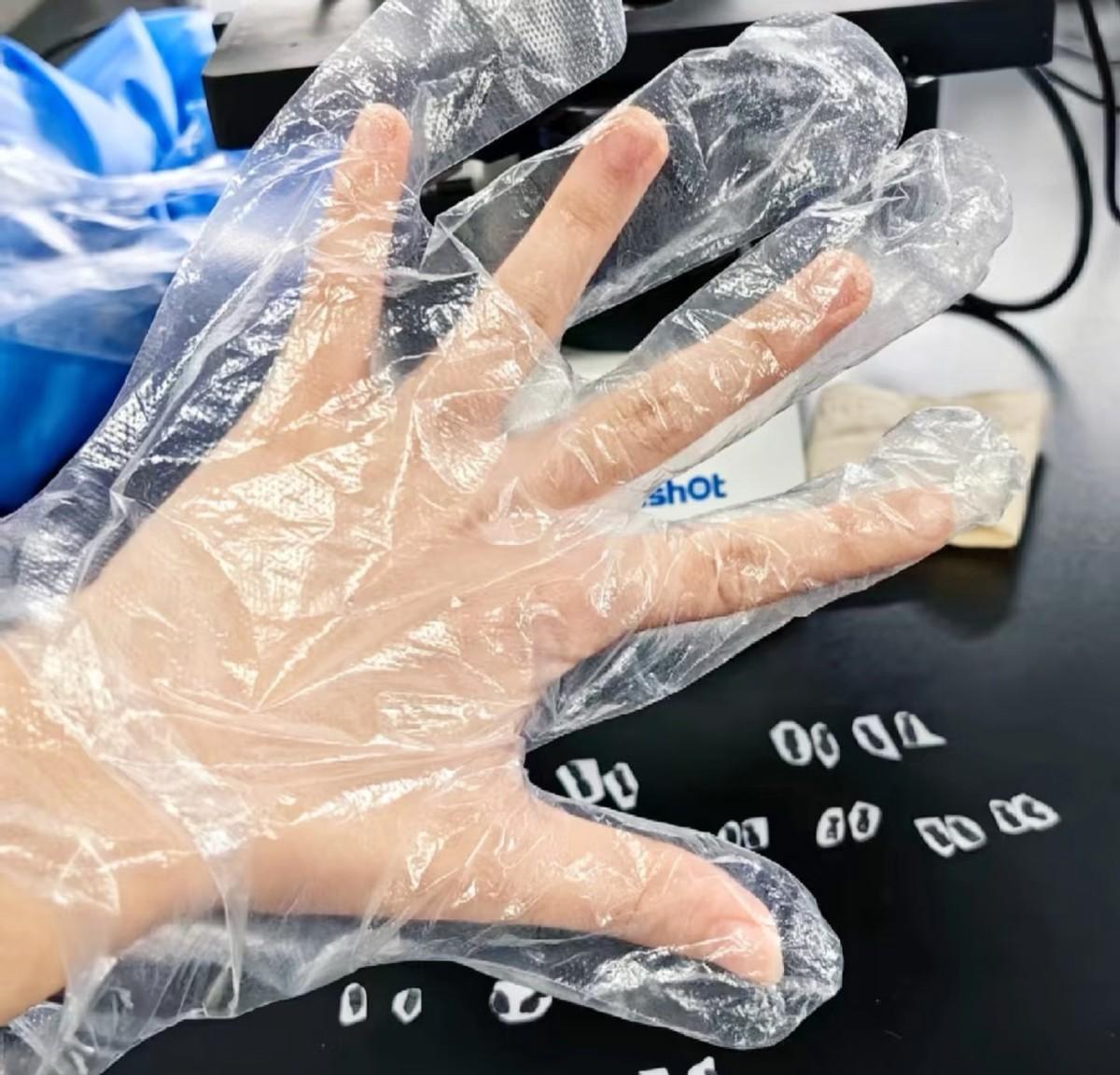 而大人的一次性手套,小手戴上大的太多,很不方便。