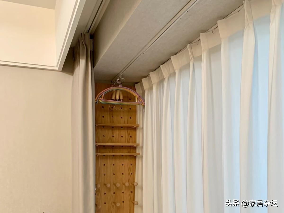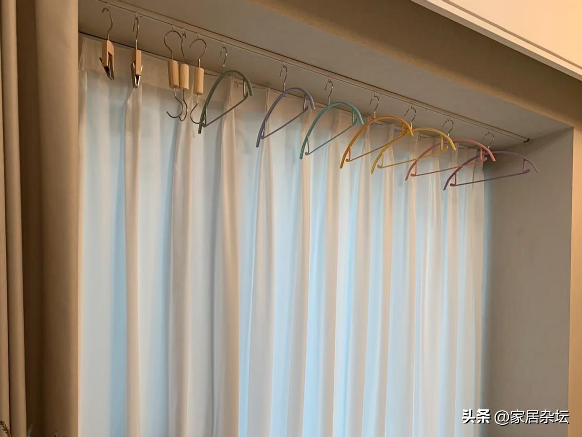 因爲顏色隱蔽,位置較高,平時很不顯眼。需要的時候,把它展開就可以晾衣服了。
