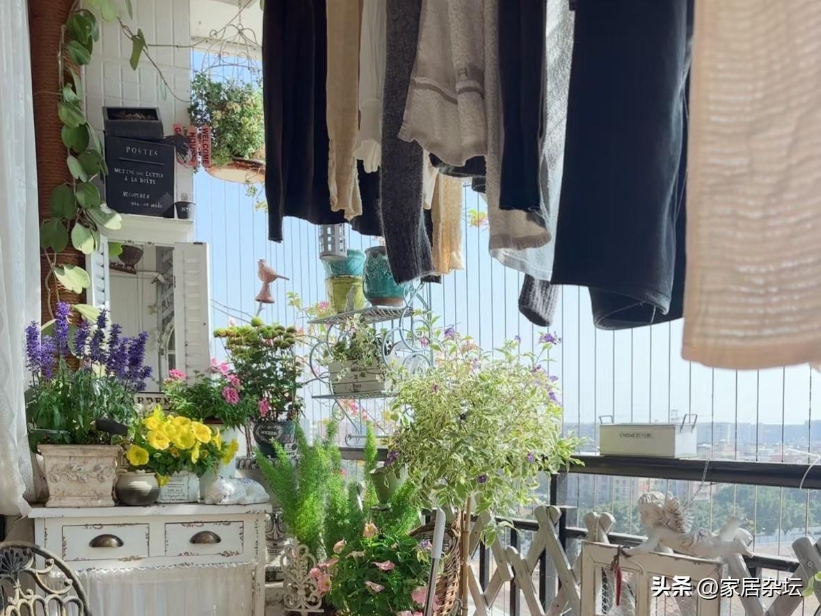 綠植晾移結合,需要精心設計佈局,而且要控制晾曬衣物的色彩,避免雜亂。