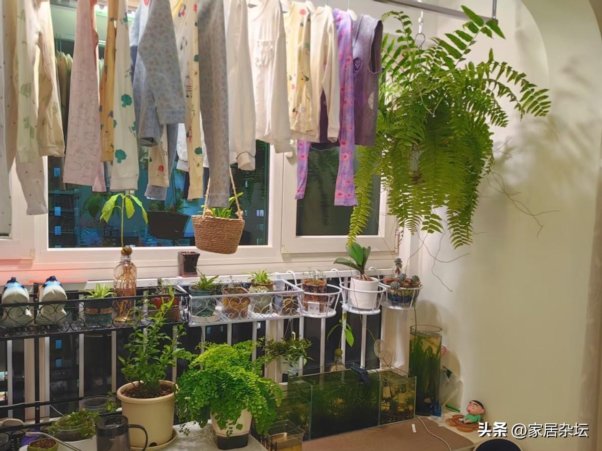 而需要晾曬的衣物,就可以與綠植交錯,形成一種非常有生活氣息的裝飾效果。