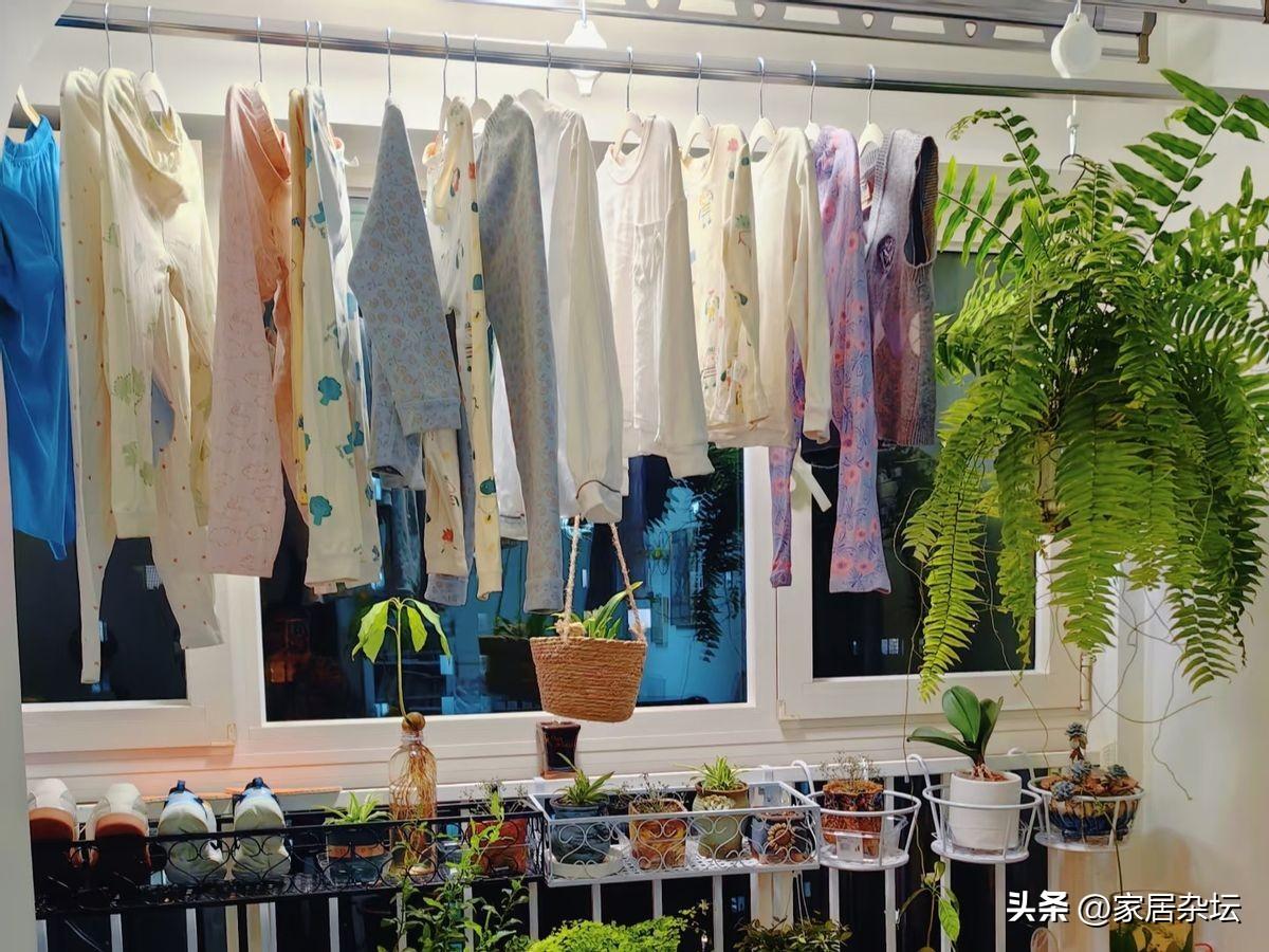 這種晾衣方案,適合晾曬量不大,熱愛自然風格的家庭。