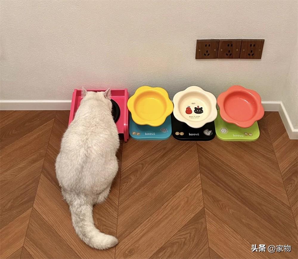 三隻貓咪,一共四個飯盆,一個是日常放貓糧的碗,每天早晚添加就行,目前來看三小隻相處還是非常和諧的~