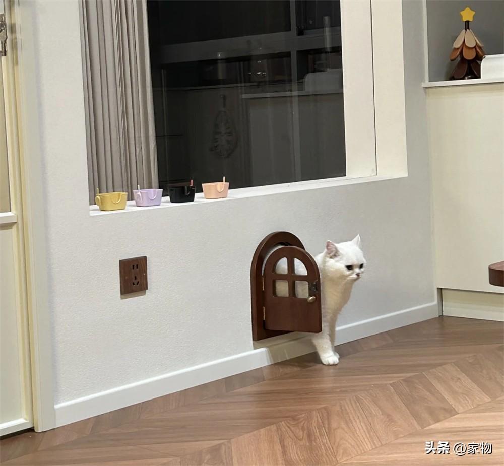 不得不說,小貓咪從門洞裏鑽出來的時候,真的是可愛極了,單是看着,就讓人感到了滿滿的治癒。