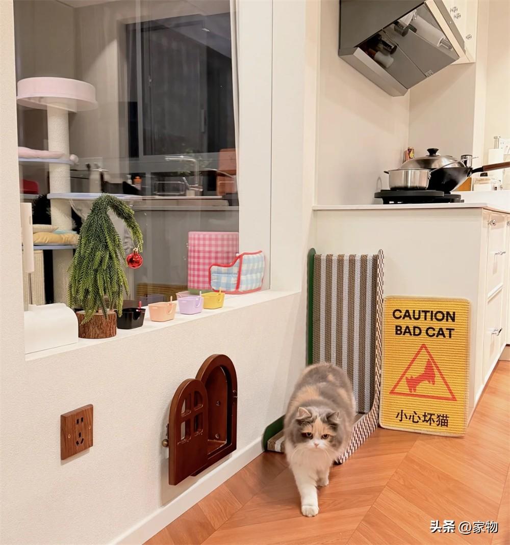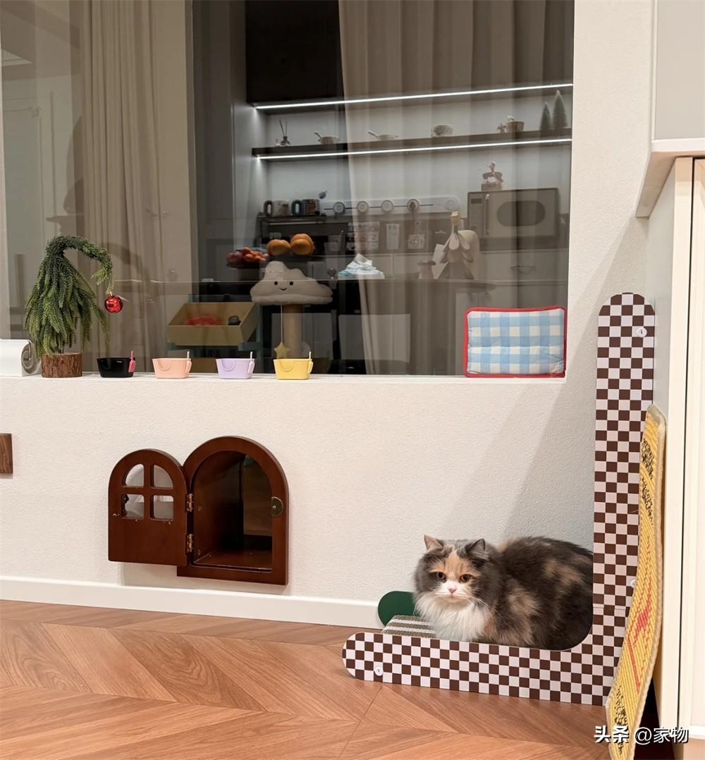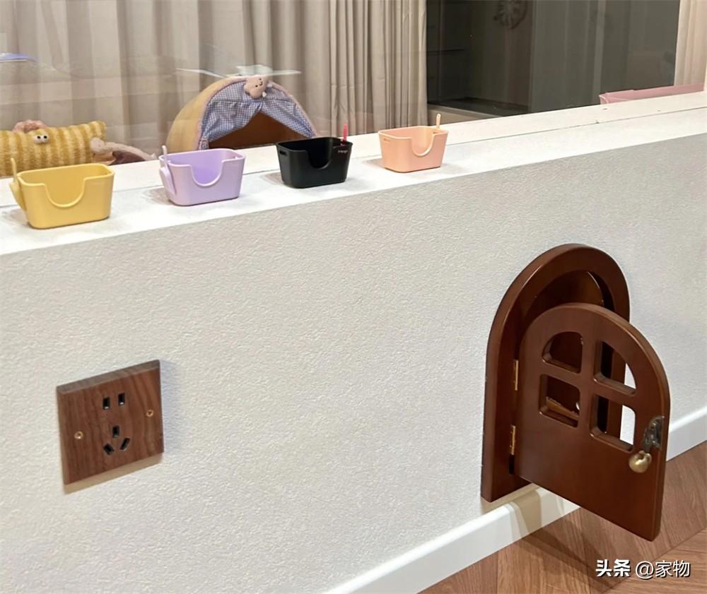 或許是從“貓和老鼠”裏汲取的靈感,這位湖南姑娘特意在貓房隔斷矮牆上掏出了一個拱形門,白天的時候就這麼開着,就像是個微縮的過家家場景,看起來多了幾分可愛和復古的感覺。