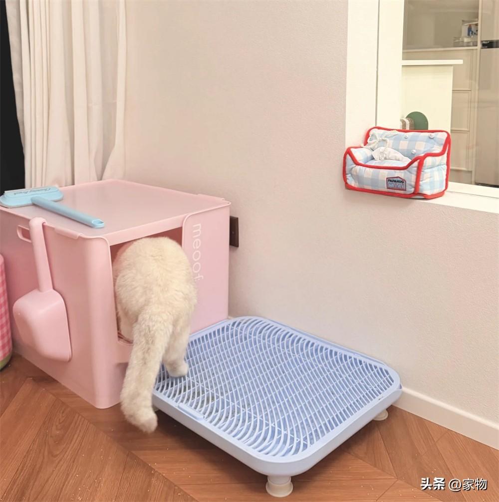 貓房內有倆貓砂盆,按照這位姑娘的說法,貓房有個最大的好處就是方便清潔打理,以前滿屋子貓毛貓砂,但現在只需要集中在貓房打掃,鏟屎官的工作也輕鬆了不少,相信養貓的小夥伴應該深有體會。