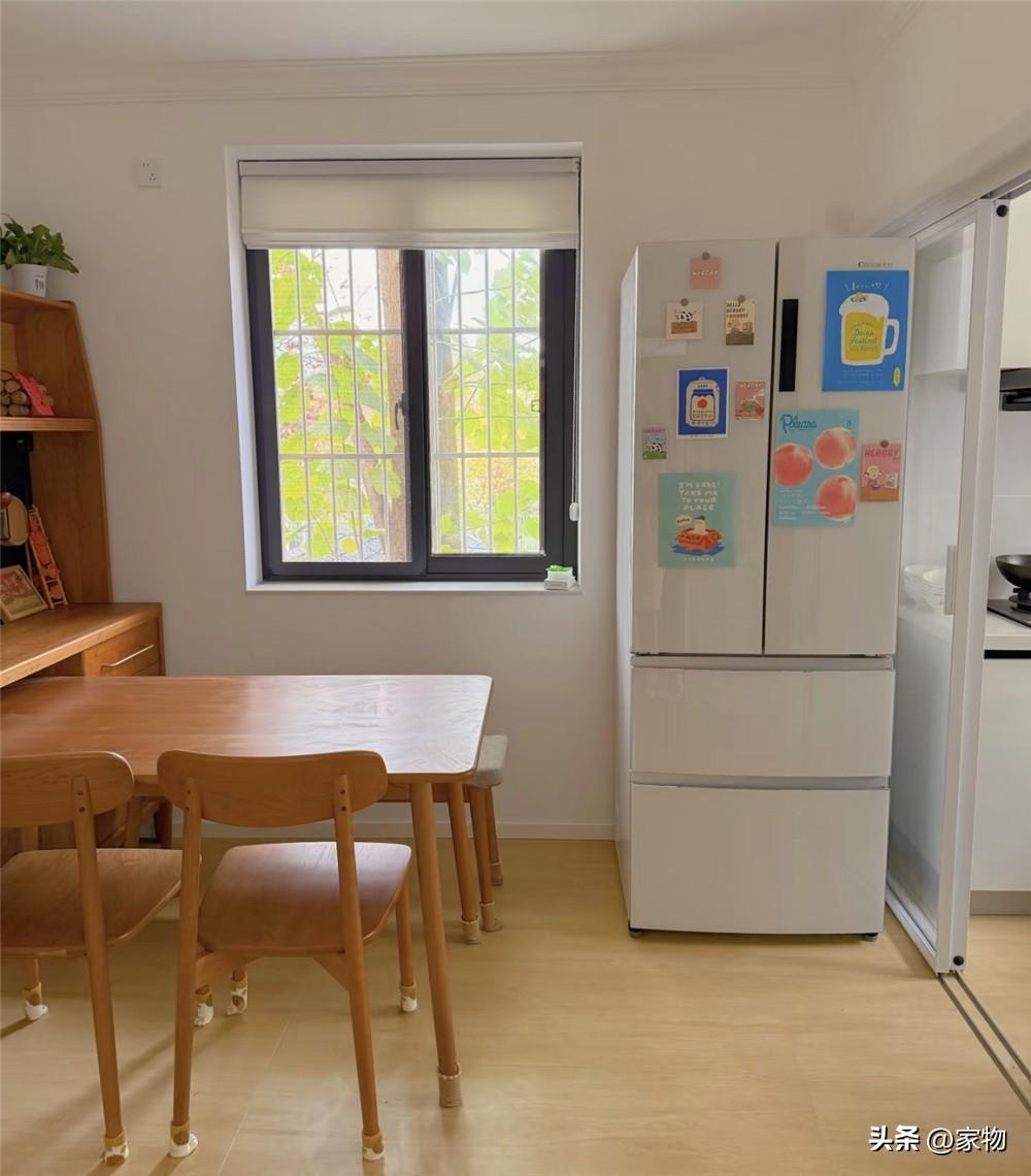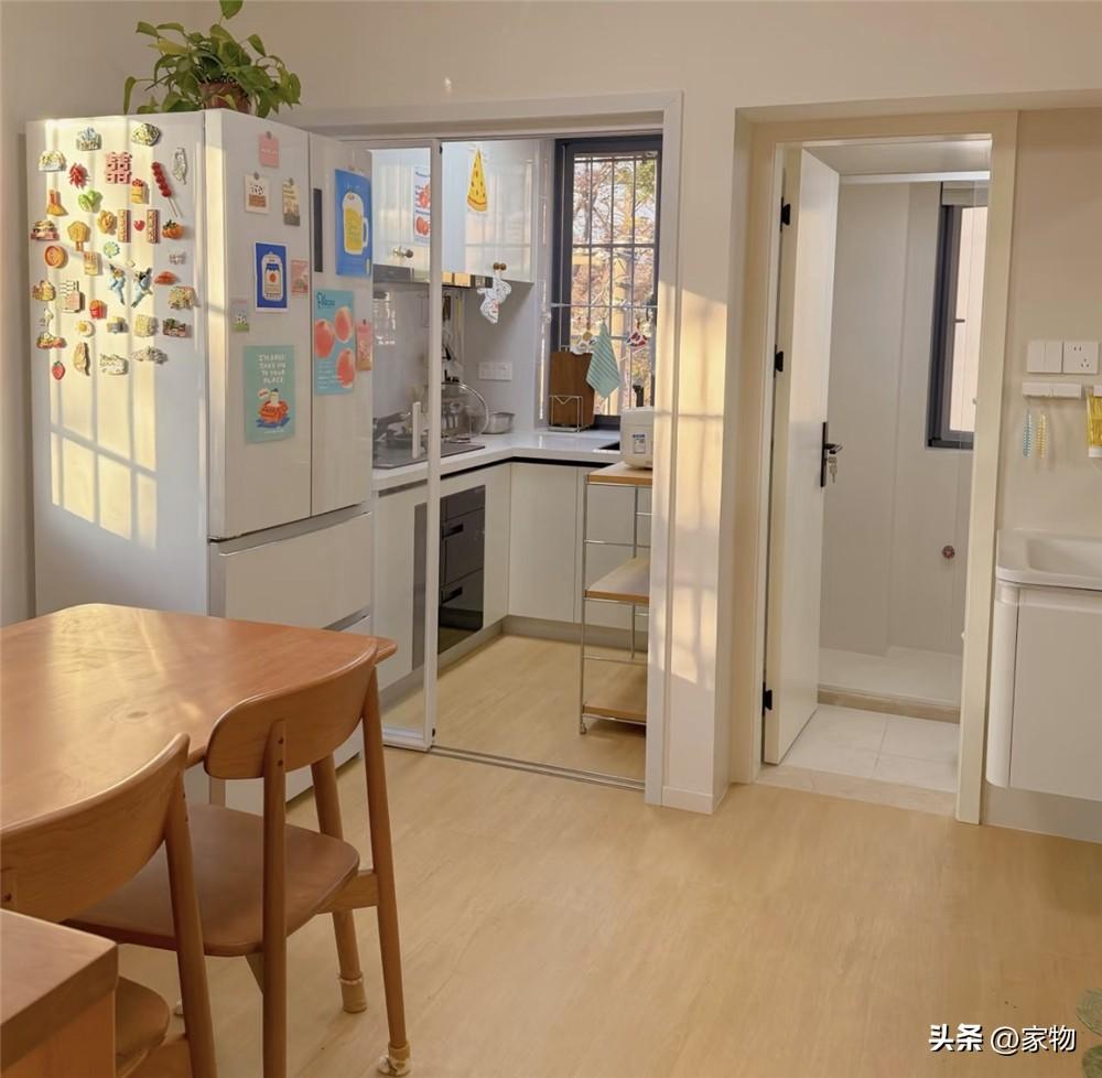 不得不說,家裏雖然是個只有60㎡的小戶型,但採光真的是非常不錯,不僅廚房衛生間都帶窗,算是全明戶型,餐桌的位置甚至還有一扇外窗,再加上樓層較低,窗外的綠蔭也爲小家內增添了幾分生機與活力。