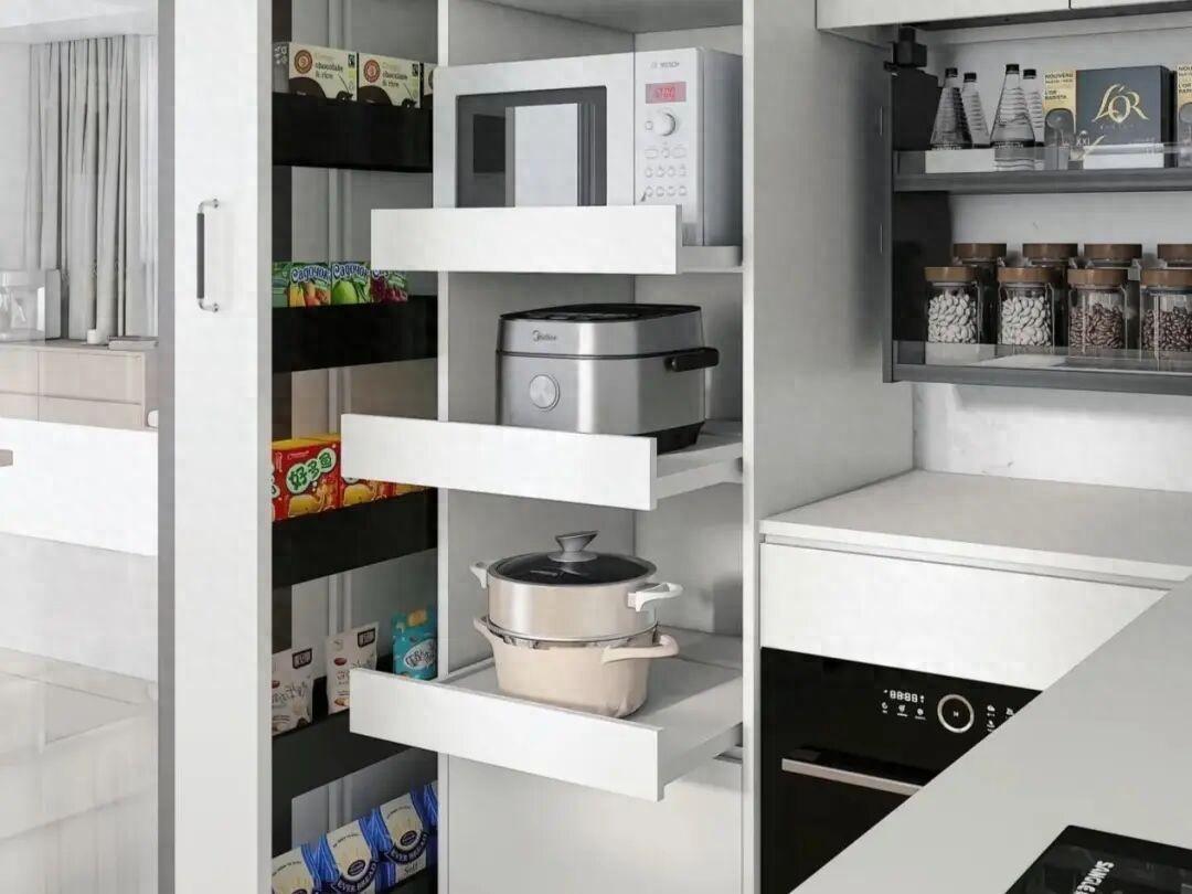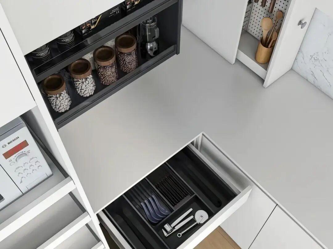 對於深櫃,建議大家必須配備抽拉層板或者拉籃。採取這些抽拉設計,能夠讓深處的物品輕鬆現身。