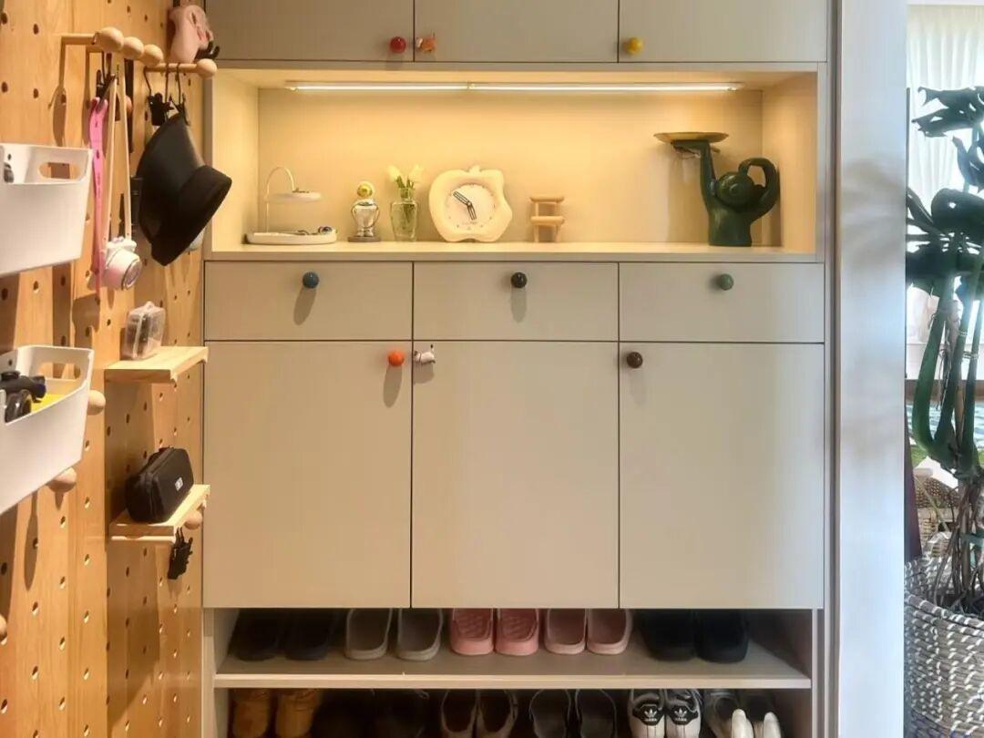 玄關櫃,浴室櫃做35~40釐米深的淺層櫃,能放鞋,化妝品就可以了,避免前後堆疊。