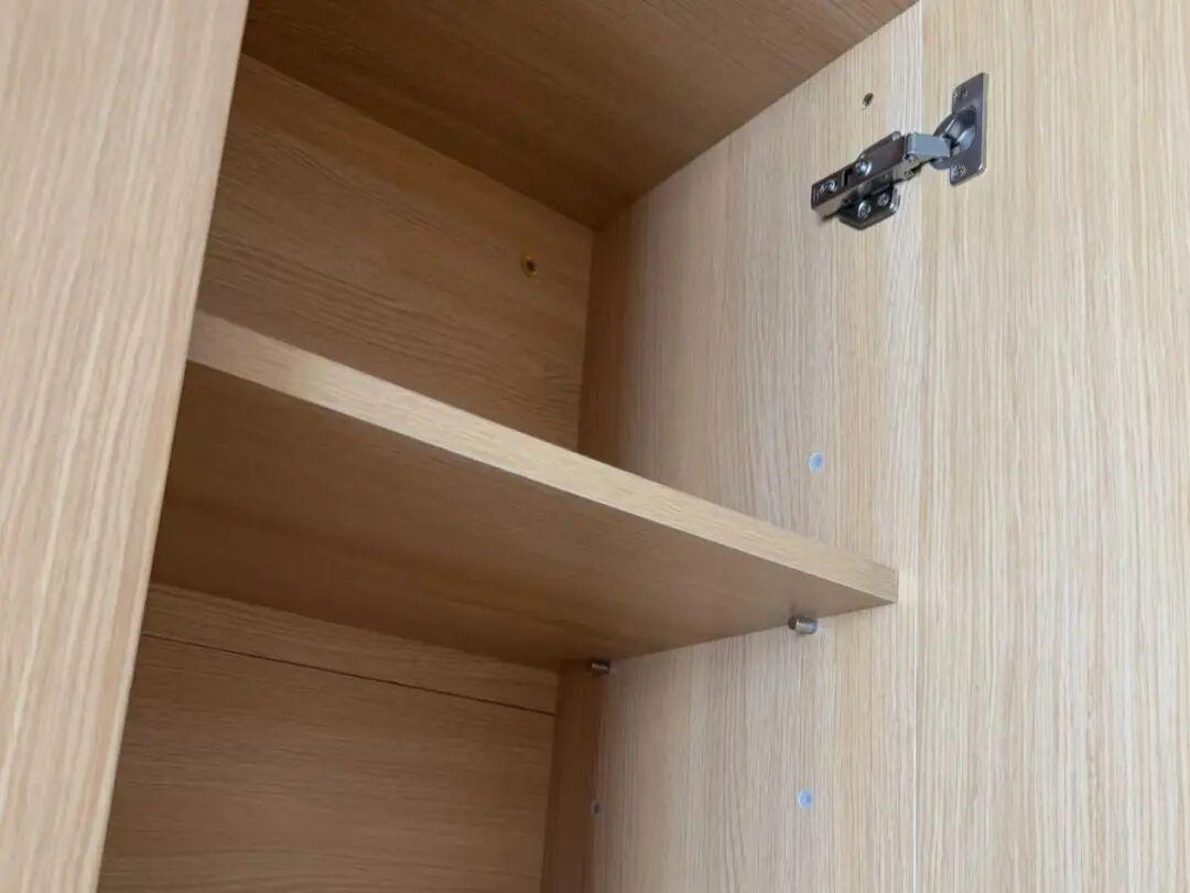 這是由於櫃門內全是固定隔板,收納物品的尺寸是很難匹配的。像物品上部的空間往往都是浪費了,而且大件物品還放不進去。