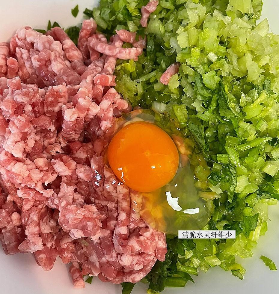 收到的小芹菜真的很新鮮,每根都挺拔翠綠,葉子嫩嫩的。山東的氣候讓這裏的芹菜長得特別水靈,纖維少,口感脆嫩。清洗後切成細末,不用焯水直接調餡,能最大程度保留芹菜的清香。