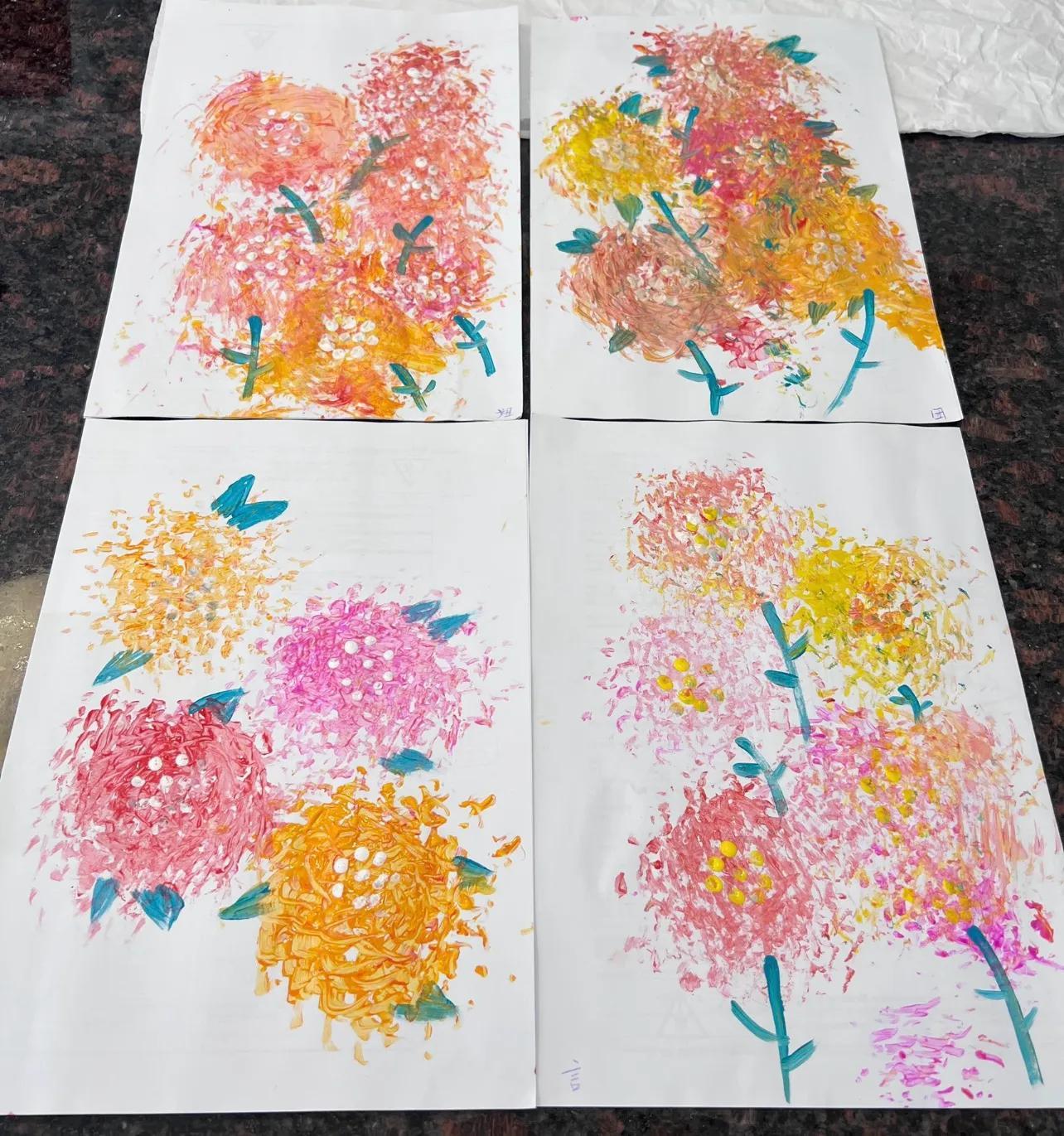 各種帶葉片的植物,比如康乃馨,用它蘸上顏料,一點,紙上立刻就能開出花。