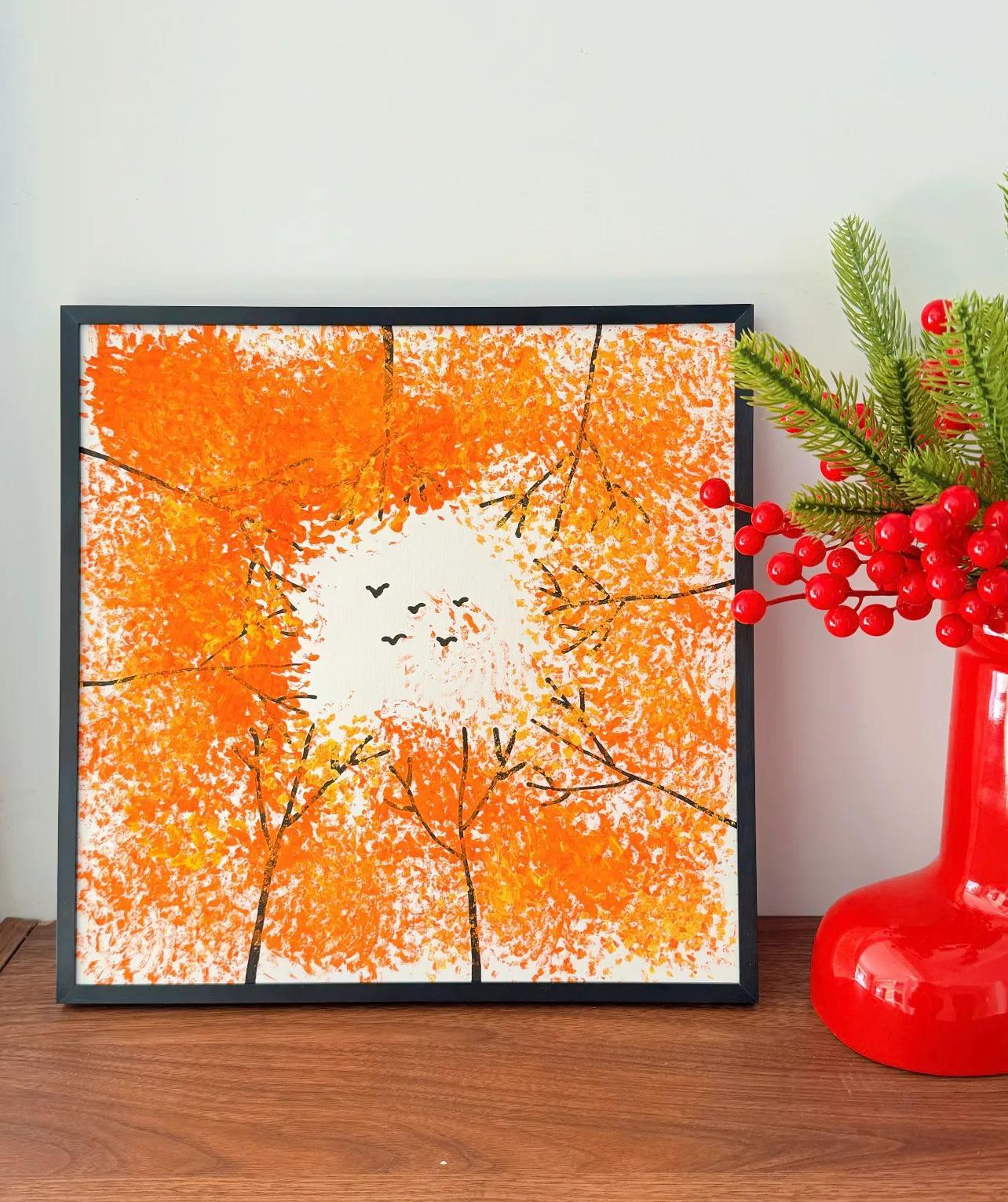 這種抽象派畫起來也不難,先畫上樹幹,再大片鋪色,最後畫上鳥,就搞定了。