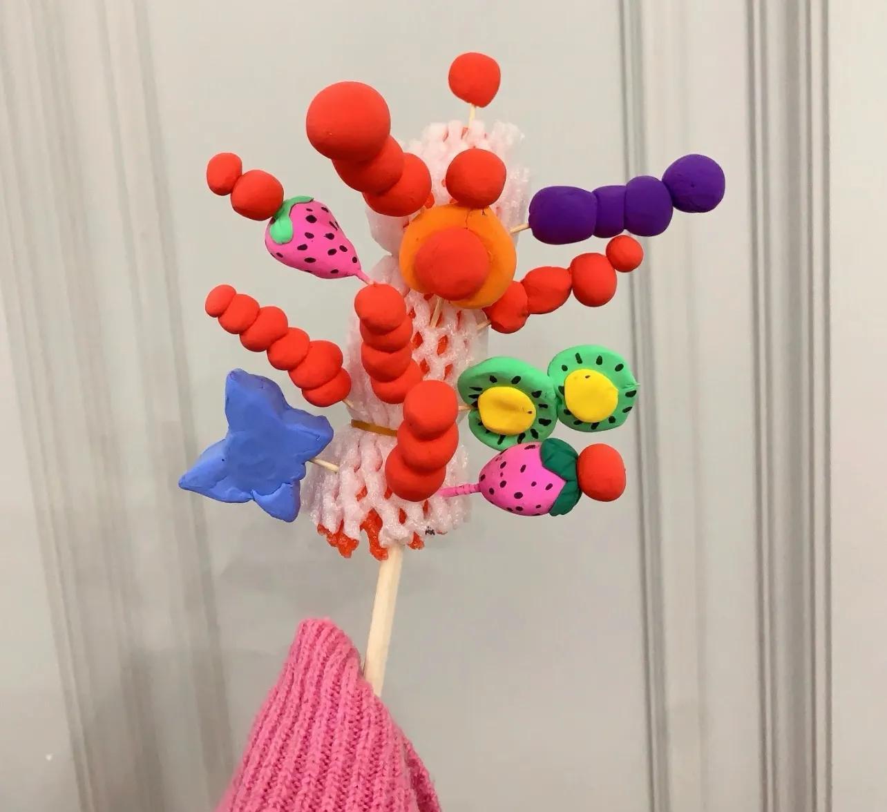 到了孩子手裏,平平無奇的水果網套也是材料。