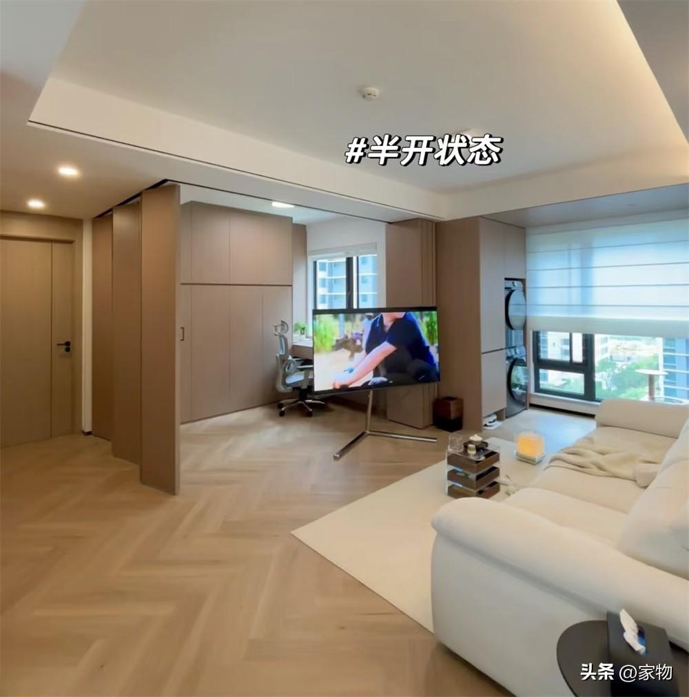 雖說將空間完全打開,但卻並沒有讓這裏失去它原本的獨立空間功能,而是將原本的大白牆,換成了現在這種可以完全開啓,也可以關閉的摺疊門,而且房間稍微內縮,即便是都關上門也比之前看起來大很多。