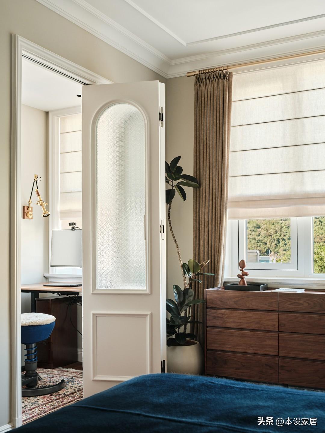 通往書房和衣帽間和衛生間的門都融入弧形元素,體現出法式風的浪漫與優雅。