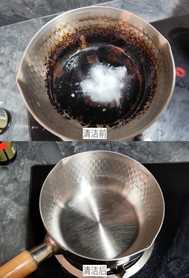 尤其是小奶鍋,真的太容易糊鍋了,鍋底黑壓壓一片,用鋼絲球都去不徹底。還是網友思路可以,用小蘇打輕易除垢。