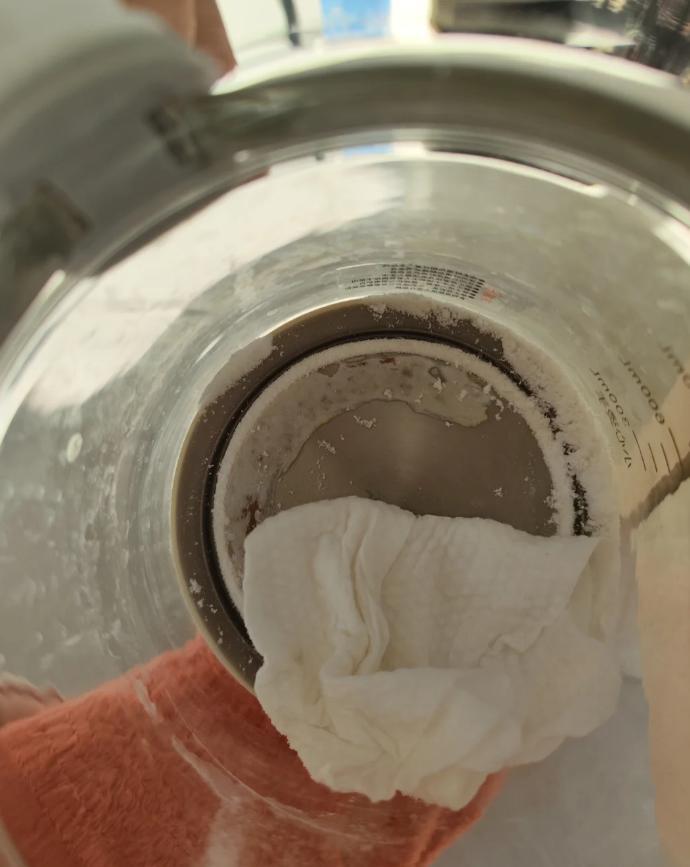 有網友反饋說,如果用小蘇打清潔不徹底,可以繼續用白醋+燒水模式+浸泡半小時來搞定。(燒水過程中不要蓋蓋)