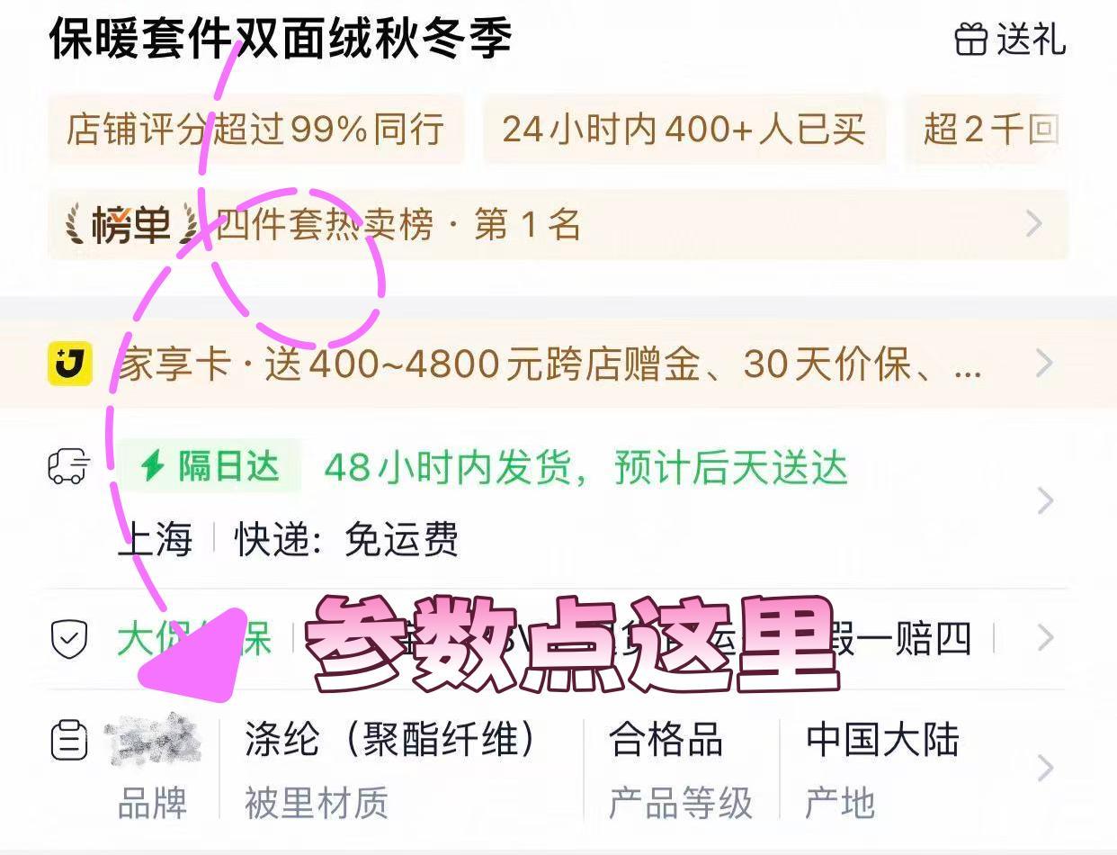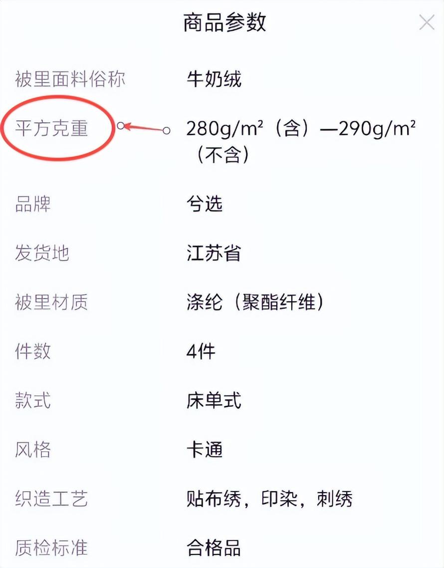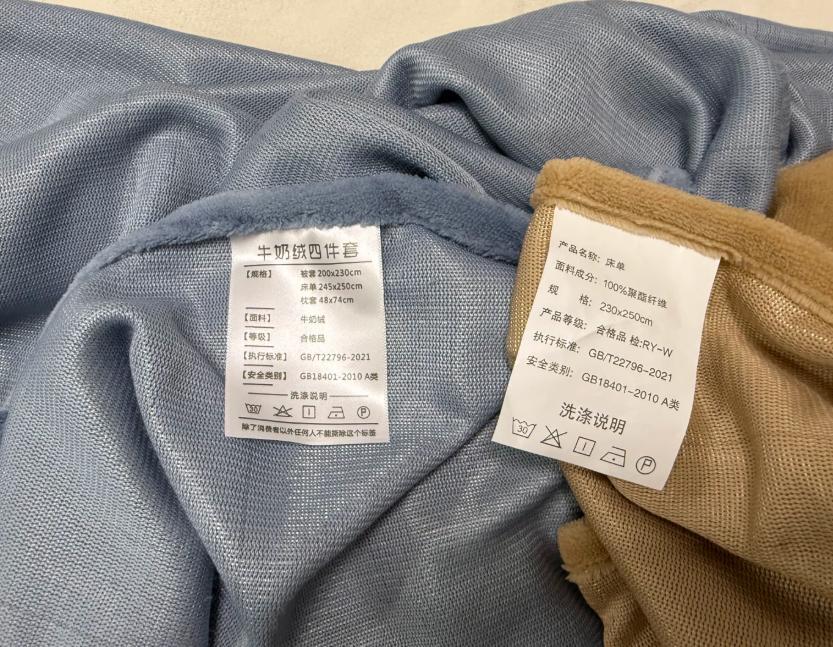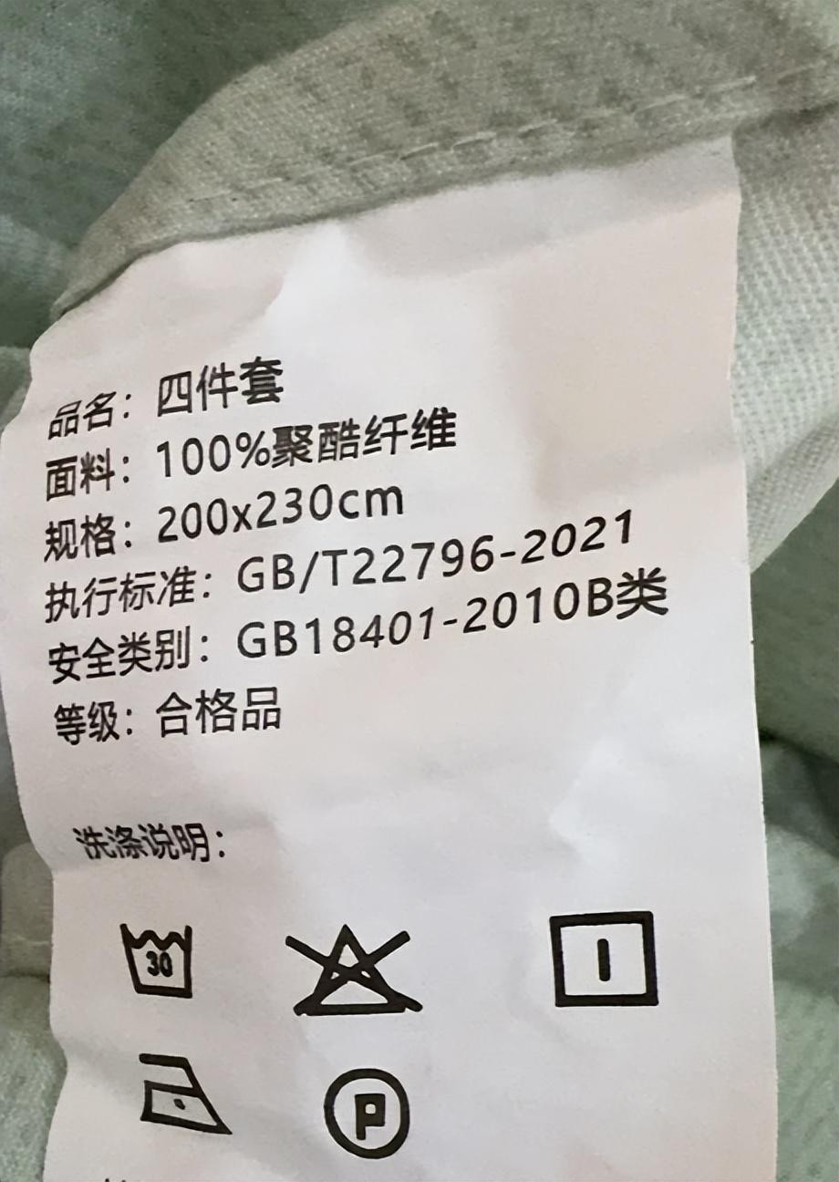 另外還有一個很重要的點,那就是要注意看有沒有成分、克重、洗滌標準這些信息的加絨四件套,避免買到三無產品。