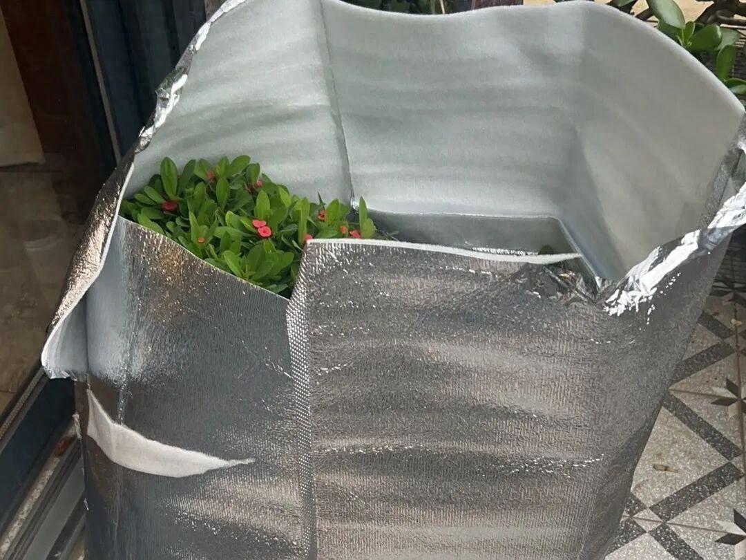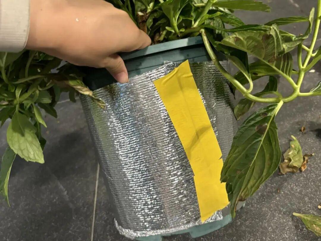 這就是利用保溫袋可以有效的防止霜凍傷害植物的根系,但又不會像塑料布那樣會阻礙透氣,還能夠減少黴菌滋生的風險。