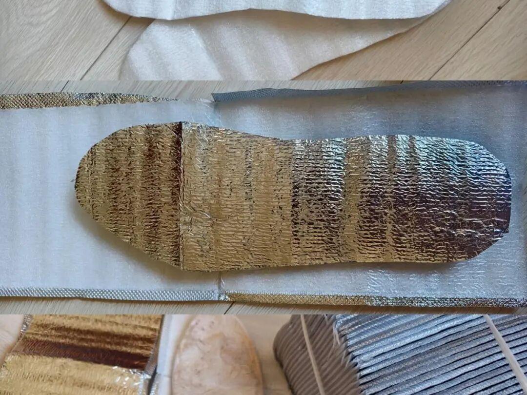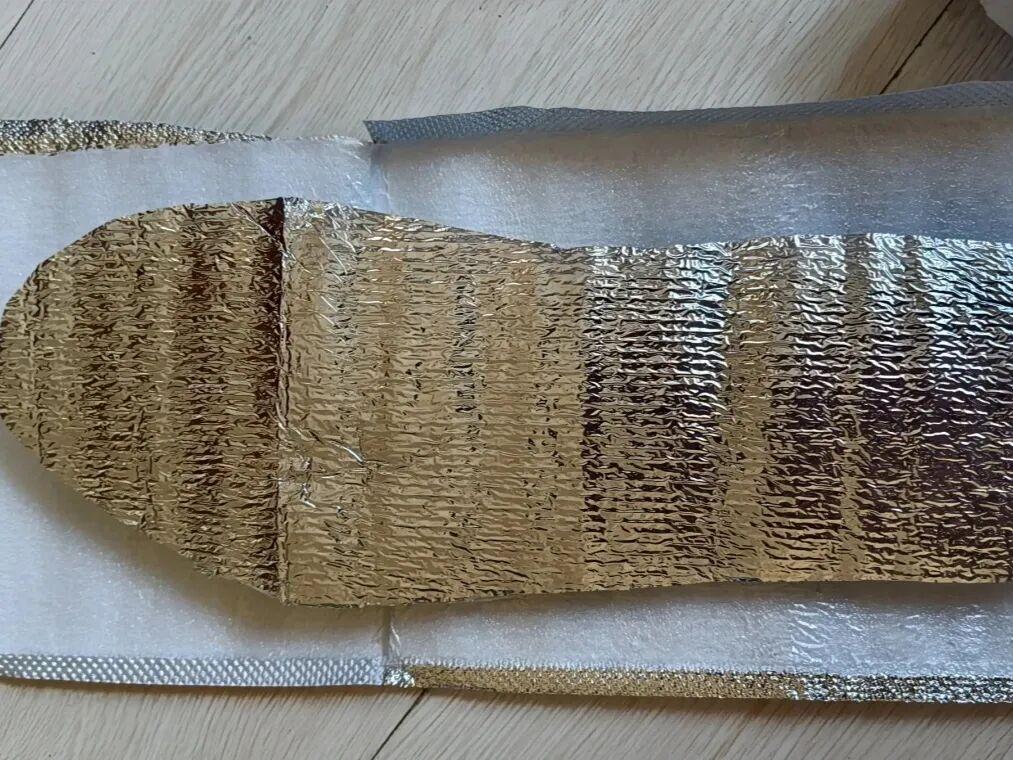 那如果鞋內腳底涼,可以根據鞋墊的尺寸裁剪保溫袋,然後把這個保溫袋塞在鞋底,你會發現腳底下立馬就暖和了。