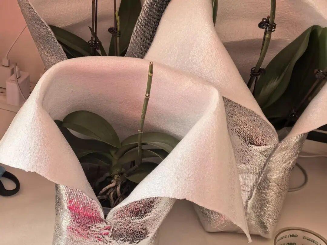 其實只需要將外賣保溫袋從側面剪開,形成一個大片,晚上將植物和盆包裹起來,用繩子或夾子固定,就形成一個簡易的保溫帳篷。